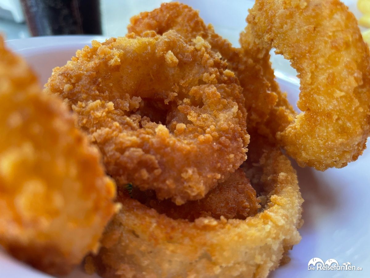 Bei Johnny Rockets gab es für uns Zwiebelringe, Pommes frites und Cheeseburger – alles zusammen wirklich sehr lecker und sättigend. Leider nicht ganz den unangefochtenen Geschmack von Guy’s Burger Joint von den Carnival Schiffen, aber dennoch sehr empfehlenswert.