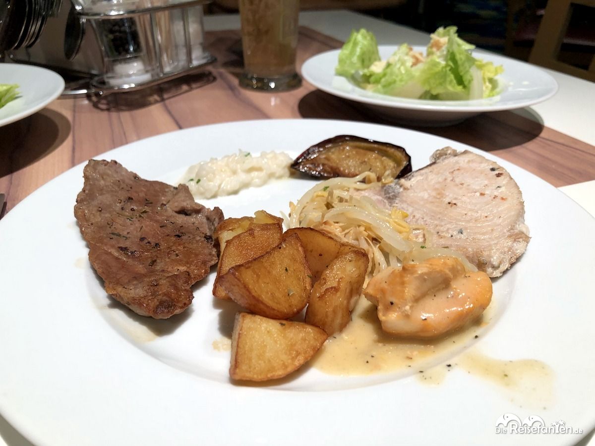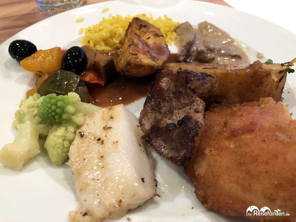 Wir kannten den Anckelmannsplatz ja schon vom Frühstücksbuffet und auch hier gab es am Abend ein reichhaltiges Buffet mit verschiedensten Speisen und Richtungen. Zwar ähnelten sich die Speisen hier öfter mal und es gab wenig aufwändigere Gerichte, aber es schmeckte uns trotzdem.