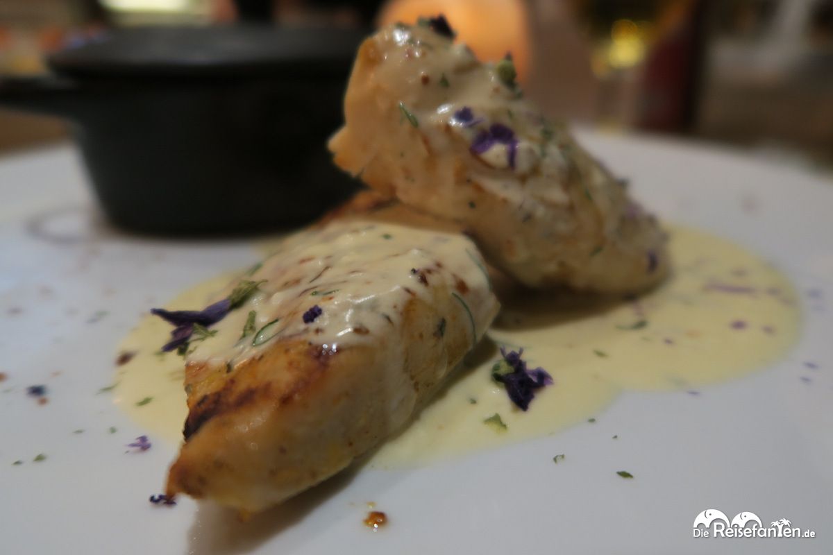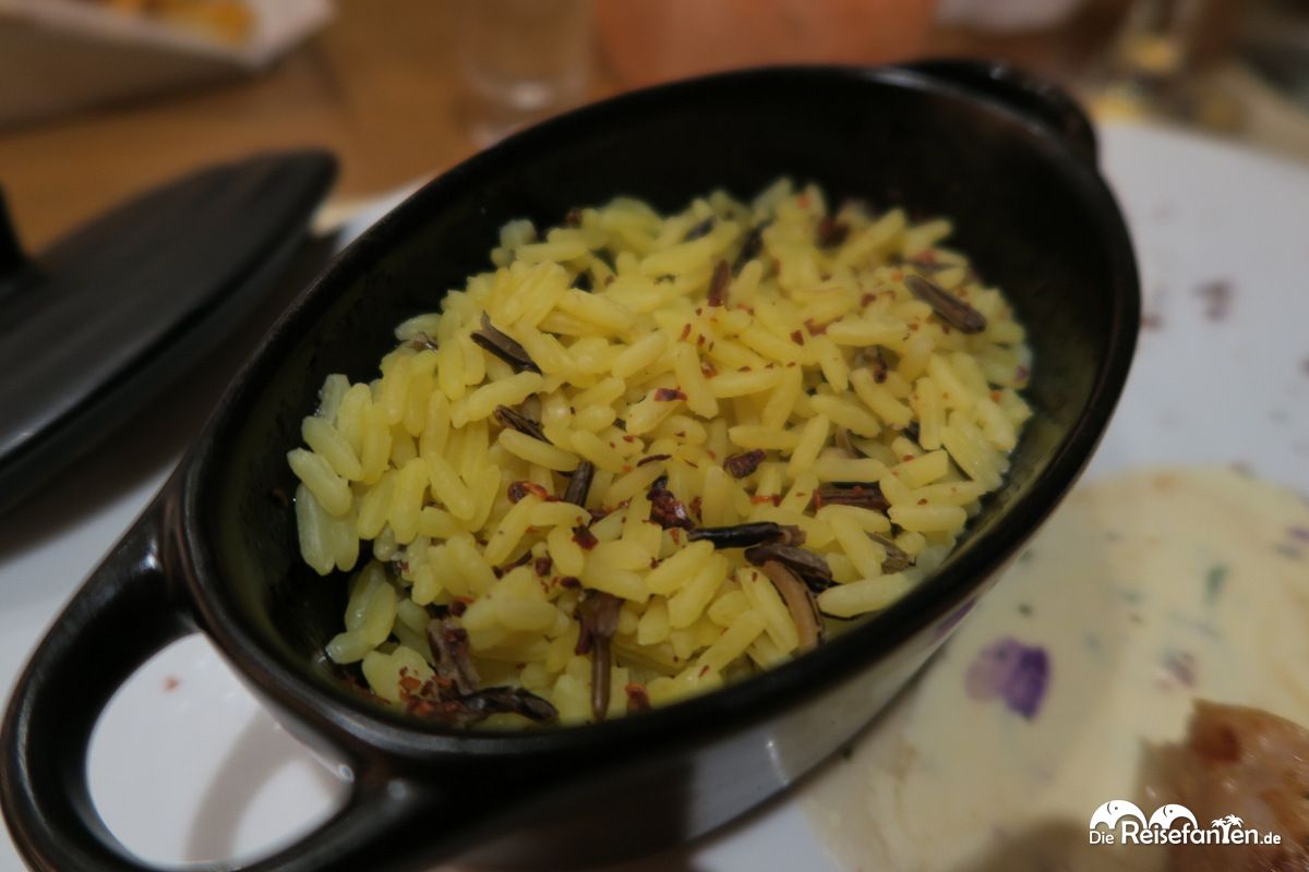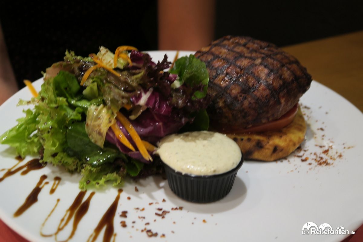Prompt erhielten wir auch schon die Speisekarte und entschieden uns für eine kleine Vorspeise, Beef Burger oder bei uns auch als Bifteki bekannt sowie für ein Hähnchenfilet. Als Beilagen gab es dazu Pommes sowie Reis. Vorweg gab es allerdings noch einen Raki aufs Haus sowie einen Gruß aus der Küche. Wirklich sehr aufmerksam und lecker zugleich.