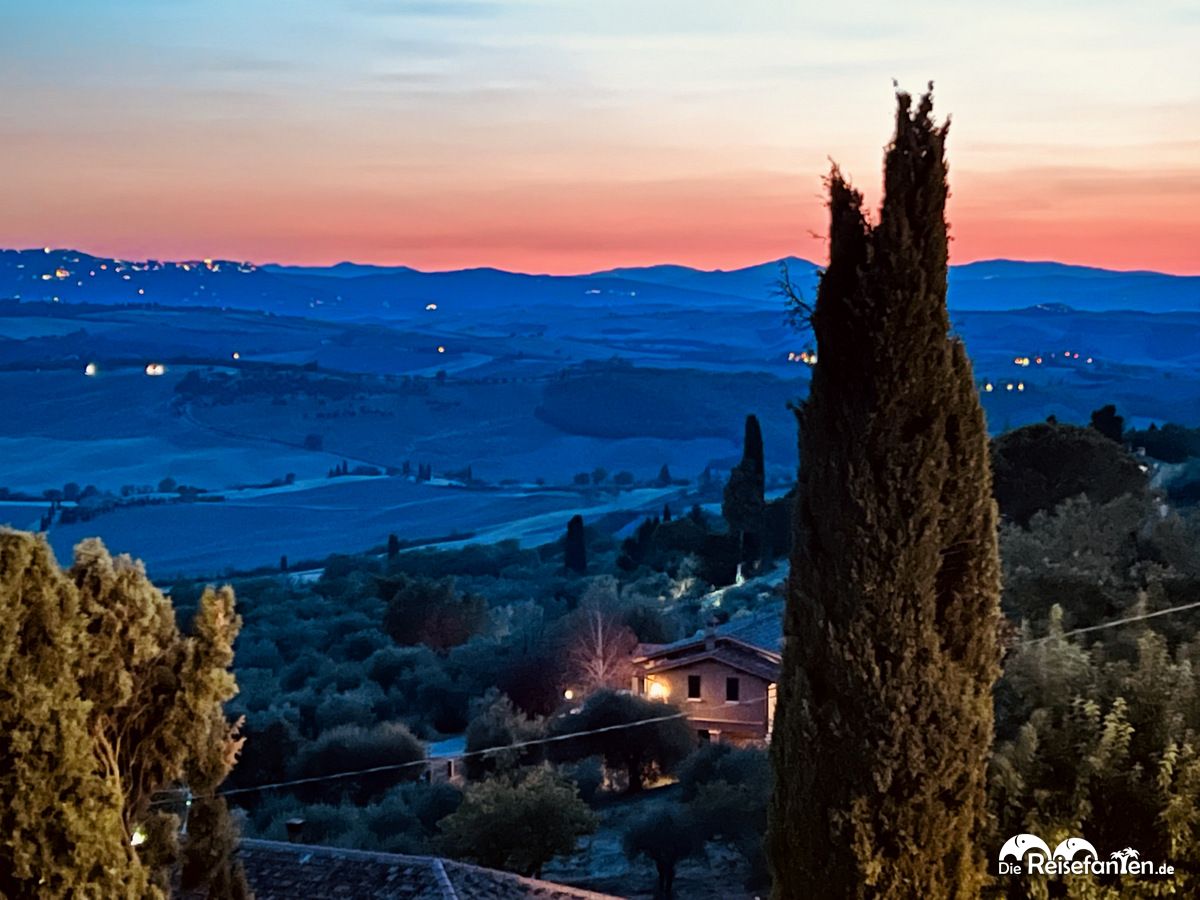 Dieses Mal waren wir zum Abendessen in Pienza und haben wirklich sehr köstlich gespeist. Im Anschluss schlenderten wir noch durch die Straßen und genossen den Sonnenuntergang über das Val d’Orcia – super schön. Die Geschäfte und kleinen Läden schließen bereits gegen 19h, am Abend spielt sich das Leben daher in den Restaurants ab und natürlich in den Gassen, die mit einem Eis in der Hand zum Schlendern einladen.