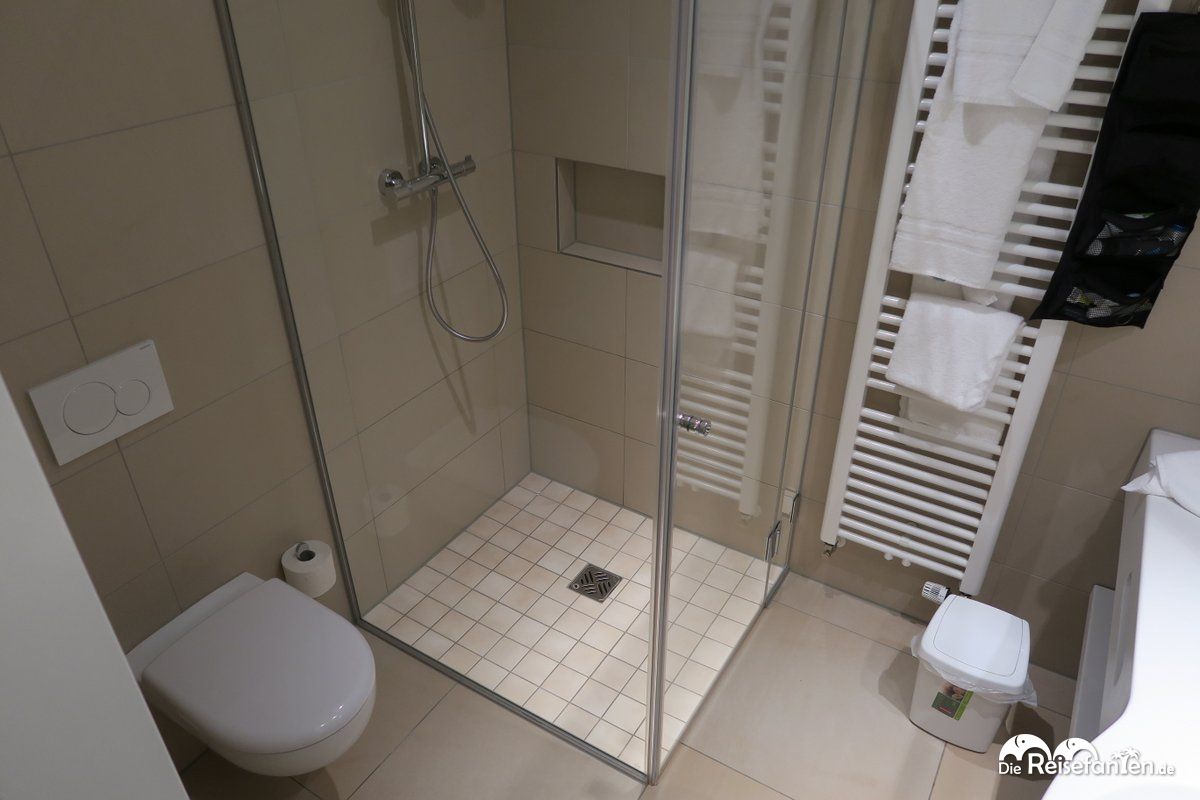 Unser Zimmer gefiel uns dann aber ausgesprochen gut. Es war schön modern eingerichtet, zwar etwas hellhörig (wir waren an einer Gangkreuzung gelegen), aber uns gefiel es wirklich prima. Auch das moderne Badezimmer erfüllte seinen Zweck mehr als gut. Die Wellness-Anlagen des Hotels waren zu unserem Erstaunen auch wenig frequentiert, obwohl sich in diesem Hause zeitgleich mehrere große Reise- und Seminargruppen befanden. Das kleine Schwimmbad und die zwei Saunen hatten wir größtenteils für uns alleine und konnten diese bis ca. 22 Uhr nachts frei nutzen.