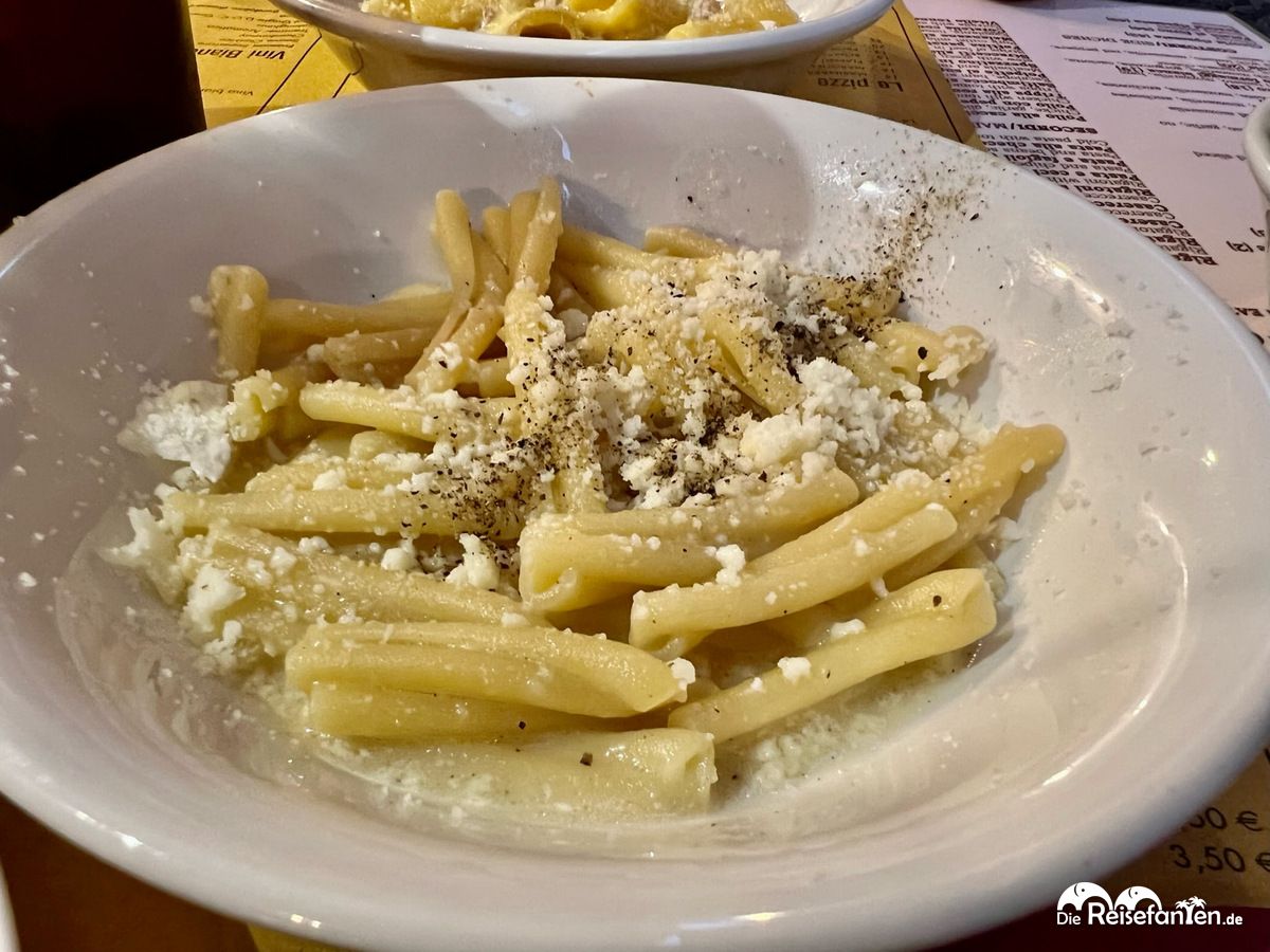 Die Begrüßung war sehr freundlich und die Angestellten waren auch sichtlich bemüht und erklärten uns zunächst die Karte. Für 25,50 EUR pro Person konnten wir uns so viele Speisen von der Karte bestellen, bis wir satt sind. Wir waren zunächst hoch motiviert und fingen mit Bruschetta, Supli und Fried Vegetables an. Verständlich, dass es kleine Portionen gibt, so dass man auch möglichst viel probieren kann. In Ordnung war die Bruschetta, der Rest war eher kein Geschmackserlebnis. Als nächstes gab es Pasta, Carbonara und Cacio e Pepe. Die Pasta war sehr aldente, die Saucen jeweils recht salzig. Die Saltimbocca alla romana aber mit den Kartoffeln hätte man kaum schlechter hinbekommen können. Das Fleisch war zäh und schmeckte aufgewärmt, die Kartoffeln waren vorgekocht und wurden auch nur kurz aufgewärmt. Zwischen unseren Bestellungen vergingen auch nicht mal fünf Minuten bis wir unsere Speisen serviert bekamen. Vollkommen ungenießbar war das Trippa alla romana, zudem die dazugehörige Übersetzung auch nicht passte.