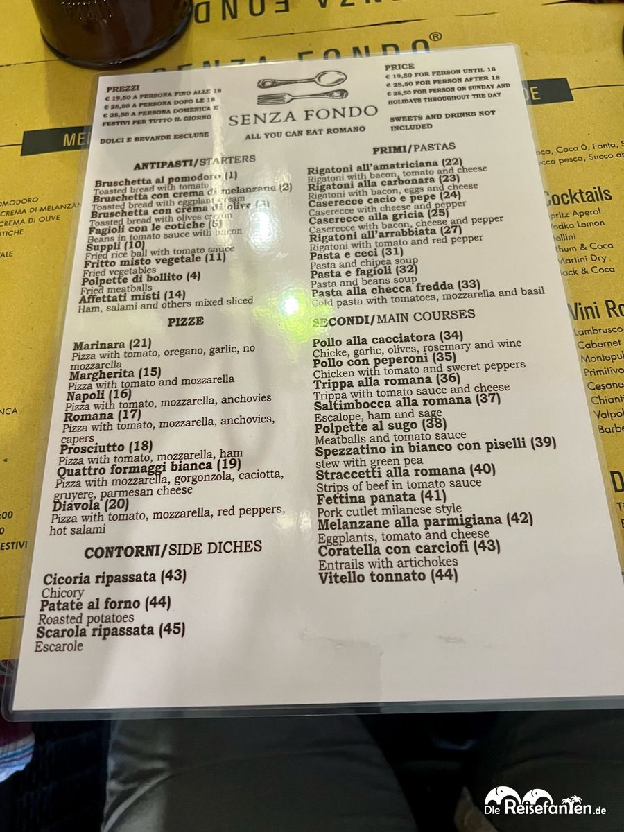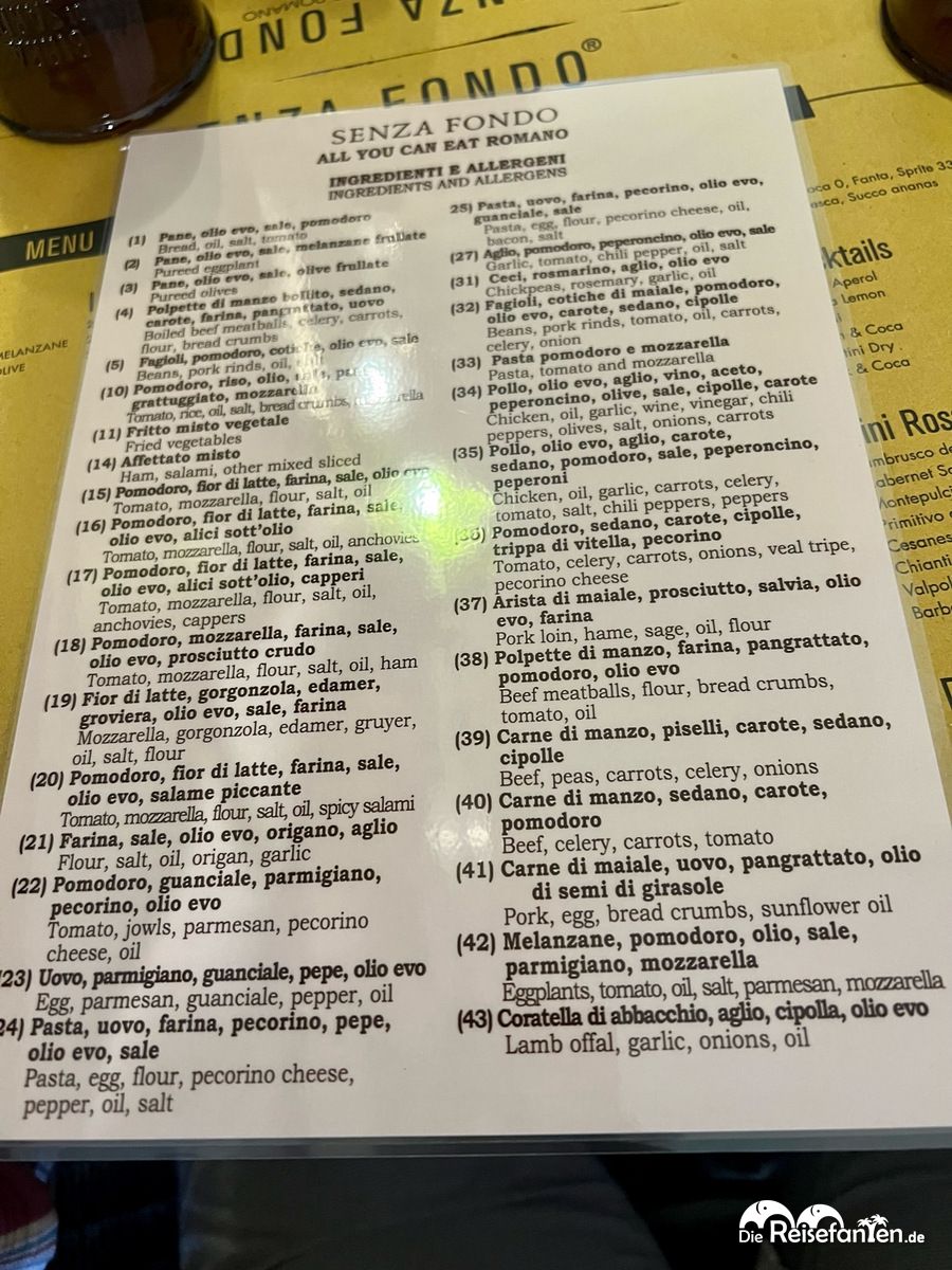 Auf Empfehlung reservierten wir einen Tisch zum all you can eat im Restaurant Senza Fondo in Rom.