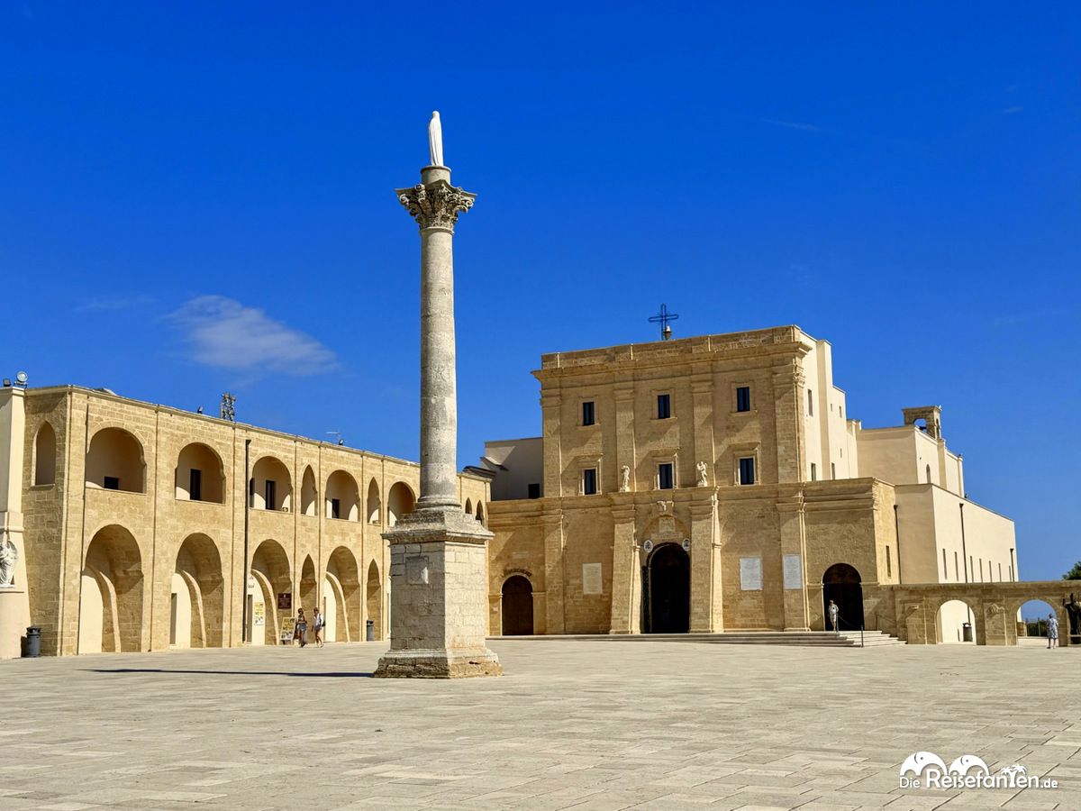 Anschließend fuhren wir mit dem Auto hoch zum Leuchtturm und zur Basilica Santa Maria de Finibus Terrae. Wir hatten Glück und schnappten uns den letzten freien Parkplatz – gar nicht so einfach, denn viele Möglichkeiten gibt es dort oben nicht. Zu Fuß über die lange Treppe wäre auch gegangen, aber die wollten wir uns an diesem warmen Nachmittag lieber sparen.