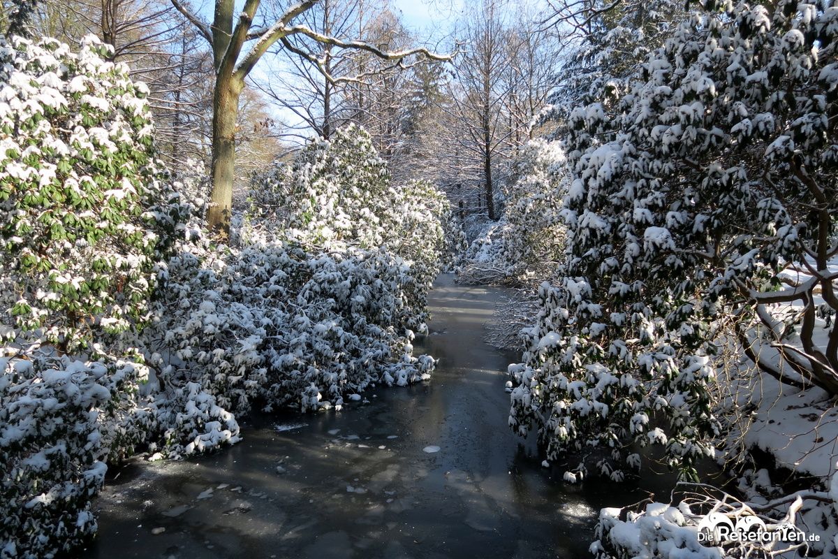 Zurück zur Idee dieses Artikels – vor fast auf den Tag genau einem halben Jahr waren wir im Rhododendron-Park und schlitterten so vor uns hin. Der Schnee war ordentlich aufgetürmt, es war still, frostig und überall glitzerte es im winterlichen Sonnenlicht. Kein Vergleich zum aufgeregten Zwitschern, was sich in diesen Tagen den Besuchern bietet. Also viel Spaß bei diesen kontrastreichen Impressionen und so sehr wir hoffen, dass uns der Sommer noch etwas erhalten bleibt – irgendwie freuen wir uns auch schon wieder auf diese winterliche Atmosphäre.