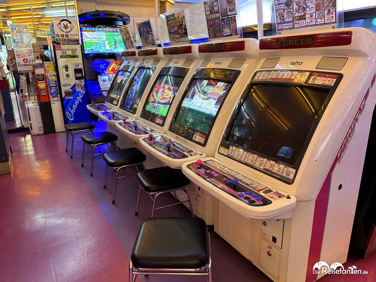 Japaner scheinen gerne zu spielen und so fanden wir in Akihabara sehr viele ‚Spieltempel‘, u.a. mit Greifautomaten. Warum man sich daraus aber ein Currygericht erspielen sollte, welches man auch im Supermarkt kaufen könnte, erschloss sich uns nicht so unbedingt. 🙂 Videospiele gibt es aber auch und wir fanden sogar einen Zugsimulator. Musikinstrumente kann man ebenfalls spielen oder tanzen. Wahnsinn, wie laut es war aber dennoch ein spannendes Erlebnis.