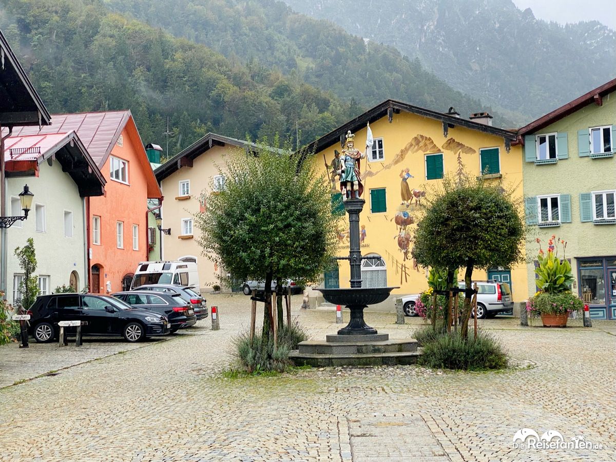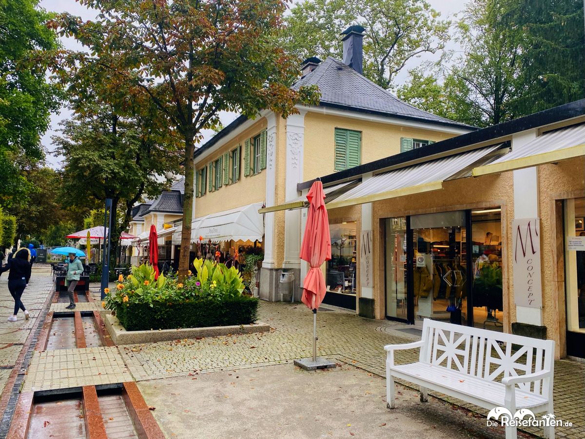 Ein weiterer Brunnen ist der Wisbacherbrunnen, der sich unweit der Fußgängerzone befindet. Um ihn herum sind Stühle angeordnet, so dass man nach einem Gang durch die Stadt hier gut eine Pause einlegen kann. Die Salzburger Str. und die Ludwigstr., die die Flanierstraßen Bad Reichenhalls sind und zur Fußgängerzone gemacht wurden, sind direkt um die Ecke. Hübsch angelegt sind die beiden Straßen, mit vielen Blumen und sehr gepflegt. Sie laden dadurch regelrecht zum Schlendern ein.