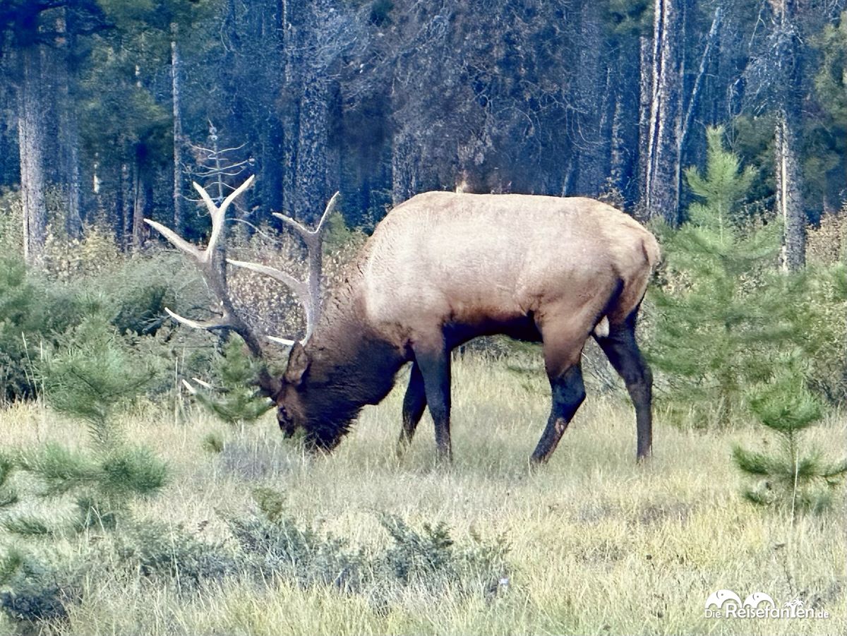 Kurz darauf gab es die zweite Wildlife Sichtung des Tages – auch hier hielten wieder einige Autos und ein Hirsch war direkt am Straßenrand zu sehen. Was für ein Geweih! Das war auch ein sensationelles Erlebnis. Wenig später trafen wir an einer anderen Stelle dann auf eine ganze Herde! Die lief parallel zum Parkway. Zum Glück verirrte sich kein Tier auf die Fahrbahn. In den Abend- sowie Morgenstunden sollte man besonders acht geben.