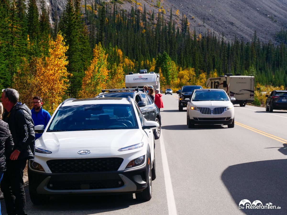 Für uns ging es weiter von Canmore über Banff bis nach Jasper. Entlang einer der schönsten Panoramastraßen, so heißt es, der Columbia Icefield Parkway. Wir waren gespannt.