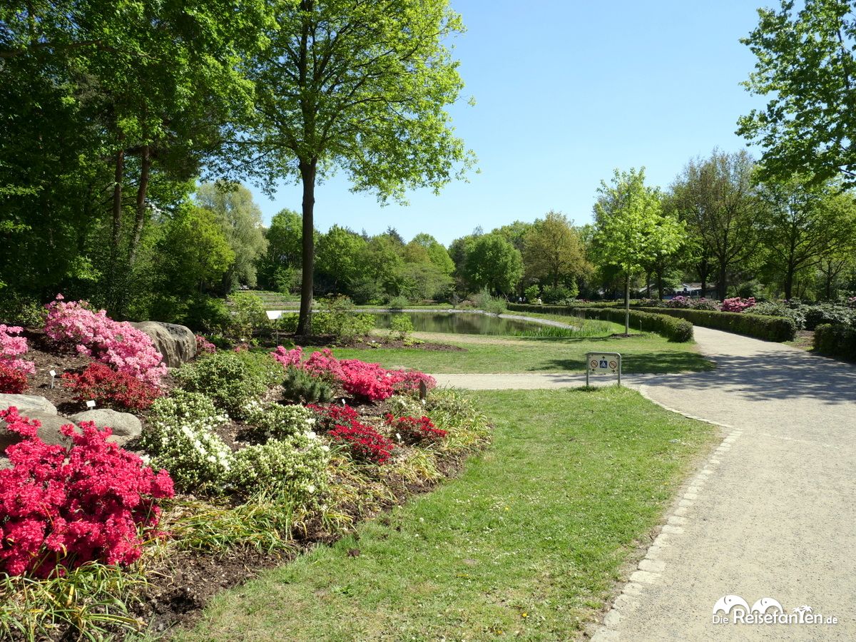 Gerade einmal 46 Hektar groß ist der Rhododendronpark in Bremen, doch aufgrund seiner langgezogenen Form und der unzähligen Wege kommt er einem noch deutlich größer vor. Die namensgebende Besonderheit dieses Parks im nordöstlichen Bremen stellen die ungefähr 1.000 verschiedenen Rhododendronarten dar, die sich dort finden lassen. Jede Art hat ihr eigenes Schild, fein säuberlich wird sich um diese gekümmert und obwohl der Park kostenfreien Zutritt gewährt, wirkt dieser aufgeräumt, sauber und in der Tat gepflegt.