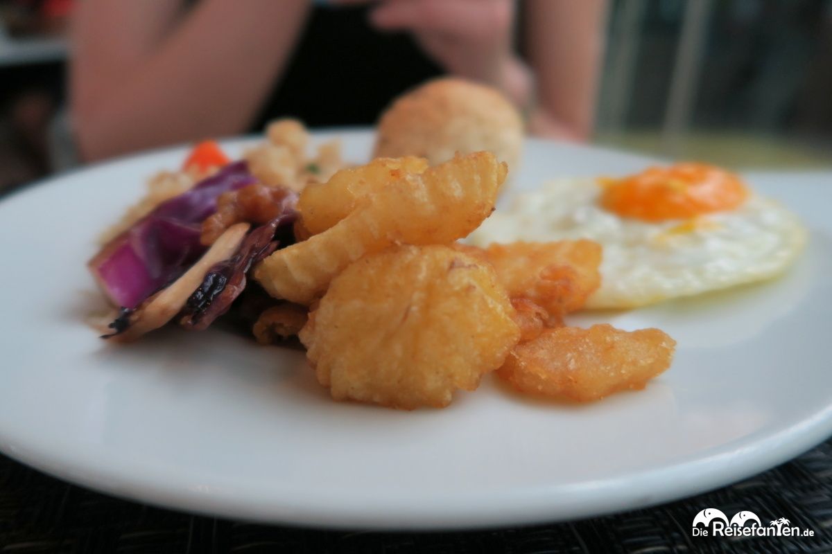 Für die anstrengende Lauferei durch Bangkok beginnt man den Tag am besten mit einem guten Frühstück, was wir auch im Centara Watergate Pavillion Hotel vorfanden. An fast schon zu vielen Stationen fanden wir alles, was das Herz begehrt und konnten somit gut starten. Von asiatischen Speisen über westliche Leckereien inklusive Waffeln, Bircher-Müsli und Früchten ohne Ende gab es wirklich so viele Leckereien, dass wir an mehreren Tagen die verschiedenen Stationen schwerpunktmäßig ansteuerten und nicht alles auf einmal schafften. Wirklich außergewöhnlich gut.