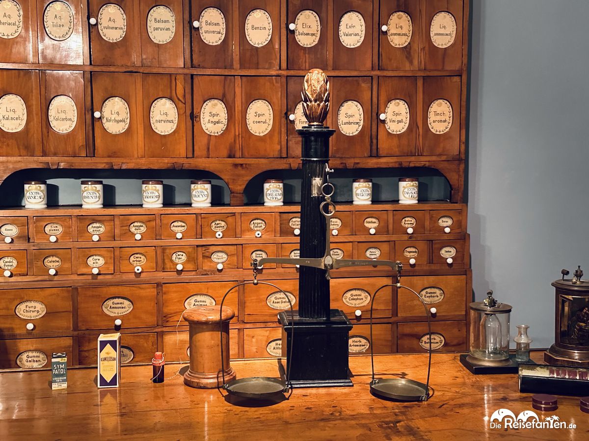 Vom Innenhof hat man Zugang zum Deutschen Apotheken-Museum. Dargestellt wird hier die Geschichte der Pharmazie. Die Sammlung der Ausstellungsstücke ist sehr umfangreich und so besitzt der Museum mehrere Räume. Die pharmazeutische Entwicklung von der Antike bis in die Neuzeit lässt sich hier mitnehmen und zudem ergeben sich durch die liebevoll gestalteten Ausstellungsräume tolle Fotomotive. Wer in Heidelberg ist, der sollte sich weder das Schloss noch das Deutsche Apotheken-Museum entgehen lassen.