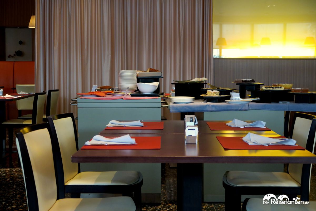 Nachdem wir eine sehr erholsame Nacht in unserem Doppelzimmer verbracht haben, freuten wir uns schon auf das Hotelfrühstück. Von 7:00 – 10:30 Uhr wird im T Hotel ein englisches und italienisches Frühstücksbuffet angeboten. Dabei gab es eine sehr großzügige Auswahl an Marmeladen, Kuchen und Säften. Kaffeespezialitäten wurden direkt am Platz serviert. Uns hat es sehr gut geschmeckt und wir konnten gut gestärkt in den Tag starten. Nur alle Kuchen konnten wir nun wirklich nicht probieren. 😉