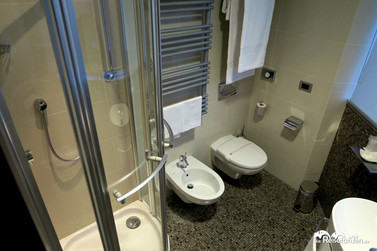 Ein schneller, freundlicher Check-In mit vielen Informationen zum Hotel und zu Cagliari und schon befanden wir uns im Fahrstuhl, der uns in die 14. Etage brachte. Ganz oben, da befand sich unser Zimmer. Bevor wir die Zimmertür öffneten waren wir schon gespannt, welchen Ausblick wir wohl gleich genießen dürfen. Das Geheimnis wurde schnell gelüftet: wir hatten einen super Ausblick über Cagliari und das nicht nur vom Schlafzimmer, sondern auch vom Badezimmer. Unser Zimmer war sehr stylisch und modern eingerichtet inkl. Flachbildfernseher, Safe und Klimaanlage. Die Fenster ließen sich zudem alle öffnen. Das Badezimmer war ebenfalls sehr modern und komplett mit Perlmutt-Mosaik-Fliesen gefliest. Sicherlich Geschmackssache, wir fanden es toll! Eine Eckdusche, ein Bidet, Pflegeprodukte sowie der schon angesprochene Ausblick machten das Badezimmer nahezu perfekt. WLAN steht im kompletten T Hotel kostenlos zur Verfügung.