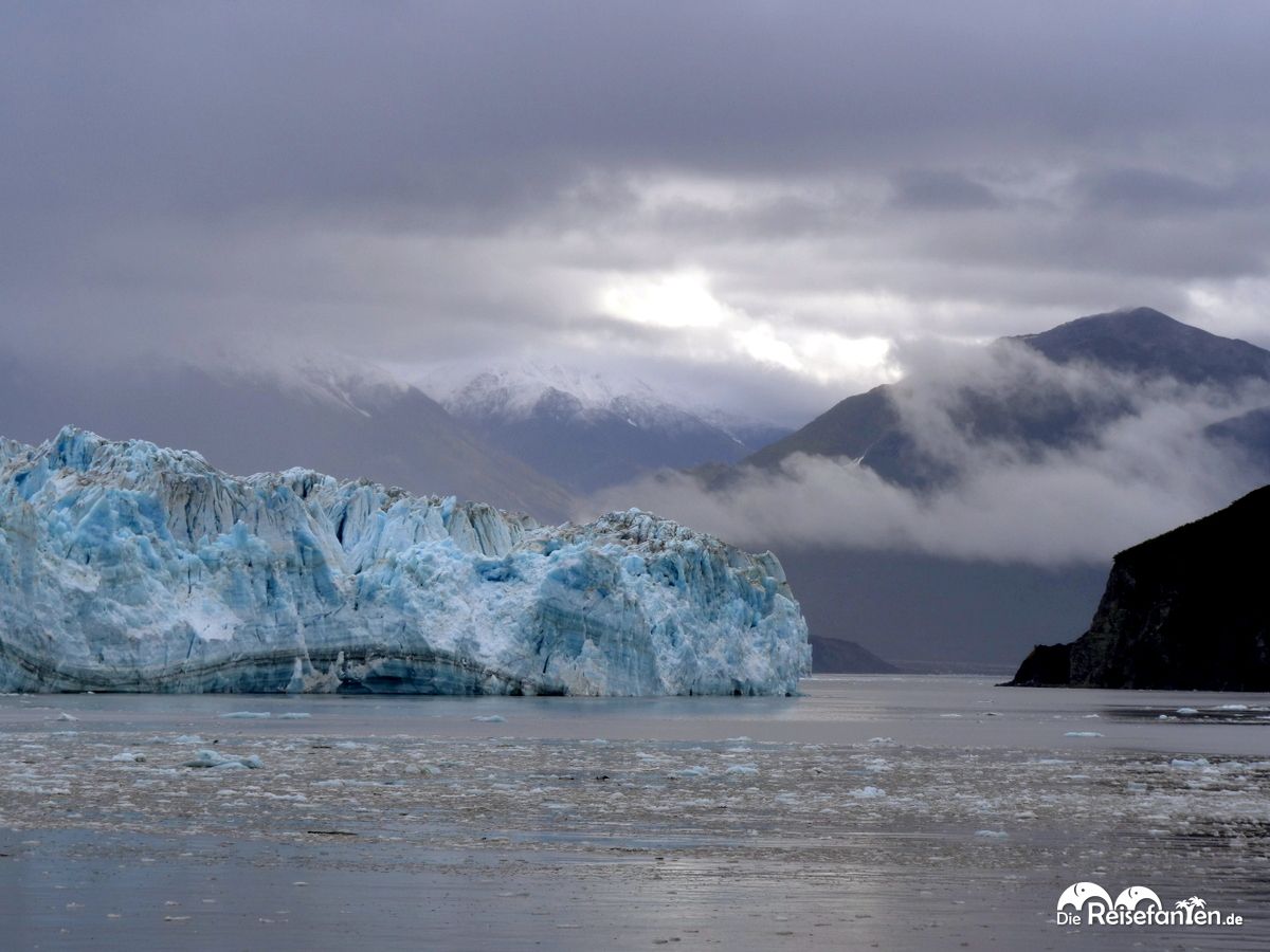 Der Hubbard-Gletscher befindet sich im Yakutat District des Glacier-Bay-Nationalparks in Alaska. Mit einer Länge von etwa 122 Kilometern ist er einer der längsten Gletscher der Welt. Schon die Anreise zum Gletscher ist ein Abenteuer für sich. Mit unserem Kreuzfahrtschiff, das uns nah an die eisigen Gewässer bringen sollte, glitten wir durch die unwirtliche Yakutat und schließlich in die Disenchantment Bay. Ihr Name rührt übrigens daher, dass sie bei einer Forschungsexpedition im Jahre 1792 keine Verbindung zum Atlantik darstellte. Am Ende dieser Bucht aber erhob sich dann vor uns die majestätische Gletscherfront des Hubbard Gletschers.