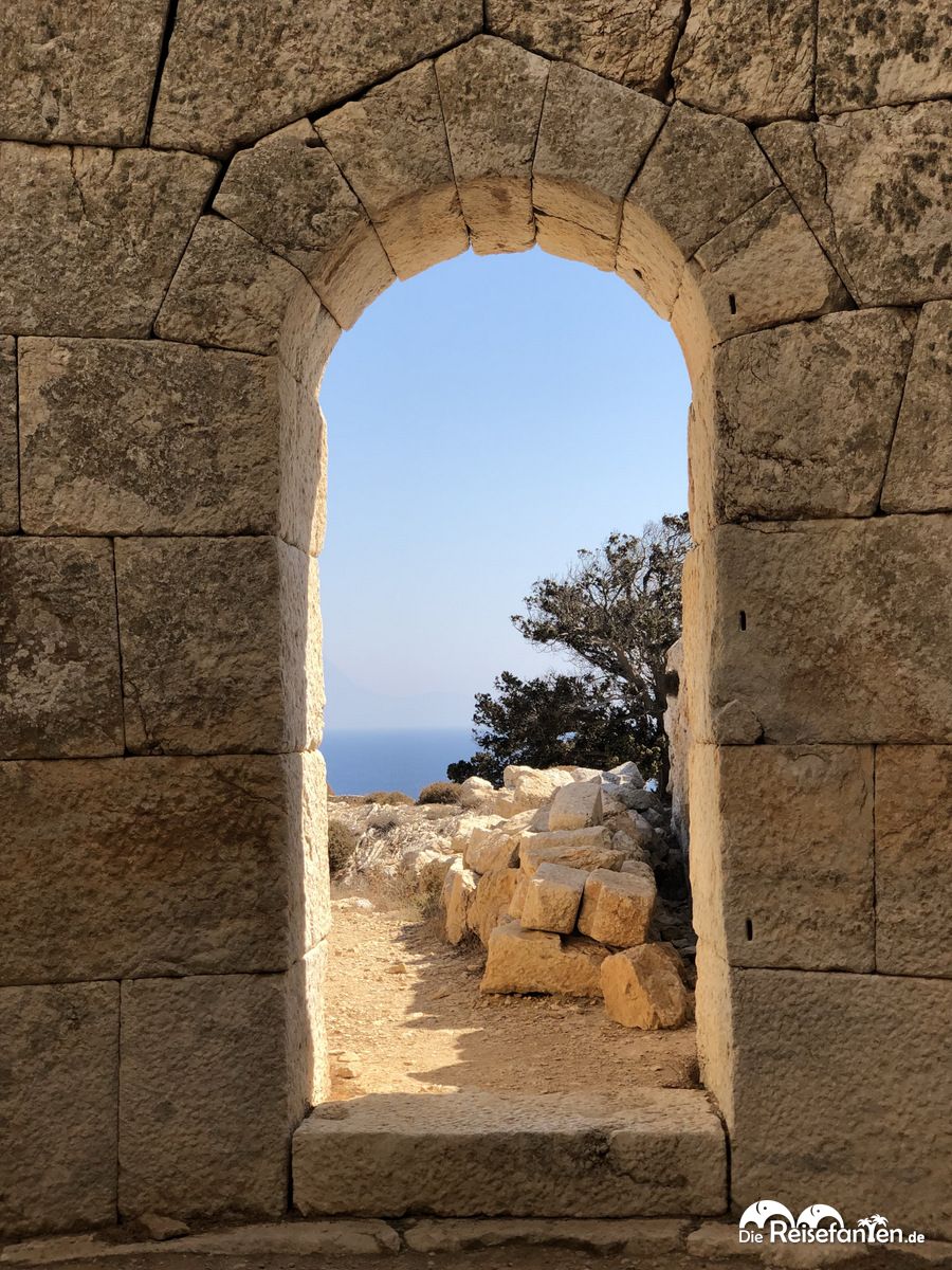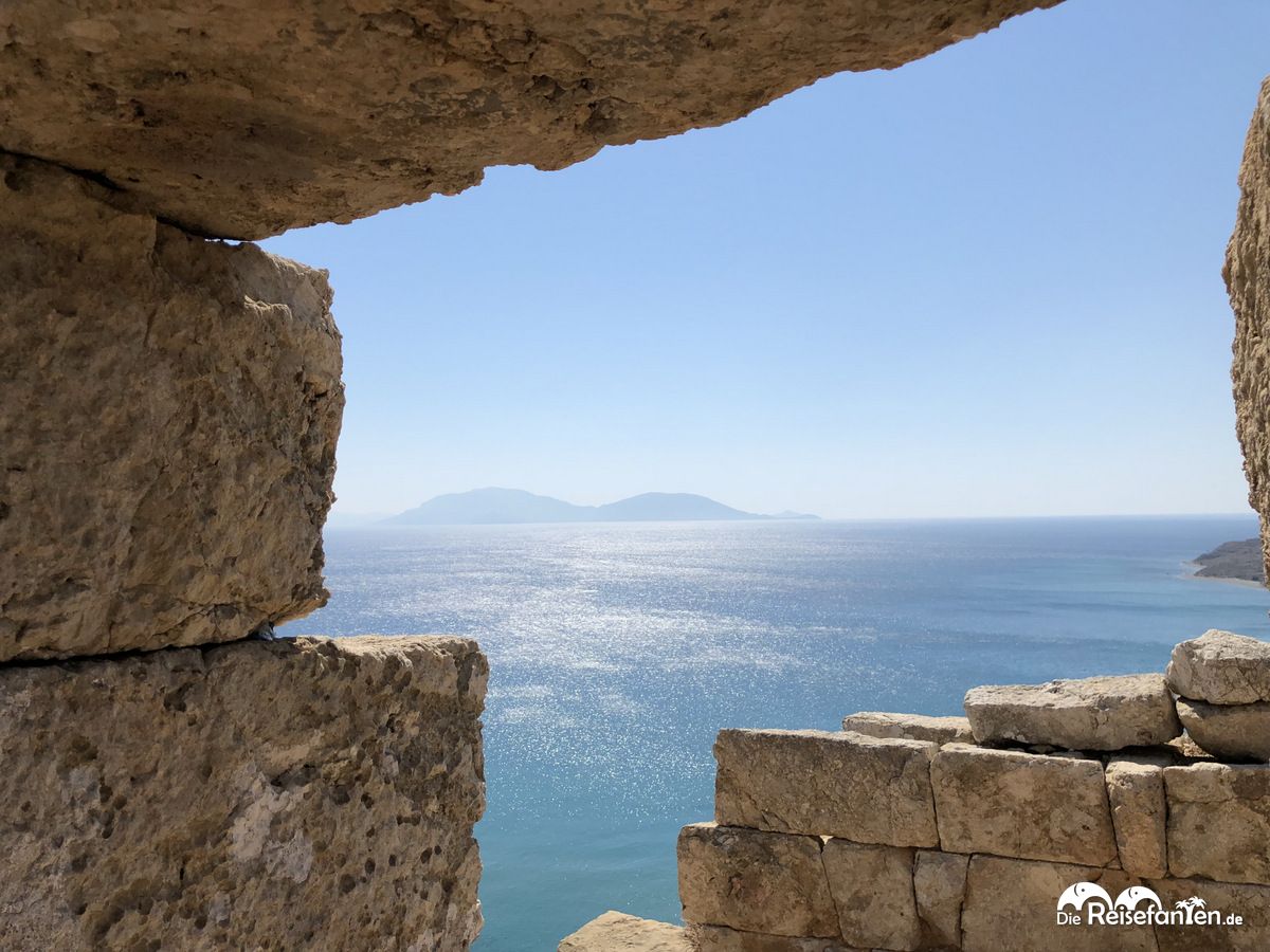Das Areal um den Drakano Turm bietet viele schöne Fotomotive. Auch der Blick auf die Ägäis und auf Samos sind von hier wunderschön. Der Turm selbst ist von innen hohl, es gibt keine Treppen nach oben, um von dort eine bessere Sicht zu haben. Das ganze Areal erinnert ein bisschen an die Serie Game of Thrones und man könnte sich den Drakano Turm gut als Drehort vorstellen. 🙂