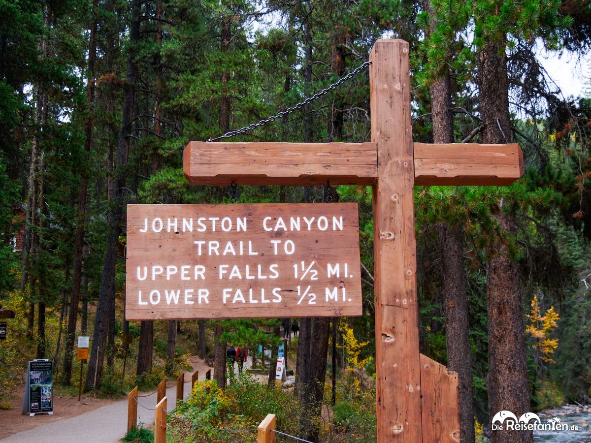 Der Johnston Canyon ist über den Bow Valley Parkway und über den Highway zu erreichen. Da der Parkway regelmäßig zu bestimmten Zeiten gesperrt ist, prüft im Vorfeld, wie ihr am besten anreisen könnt. Wir konnten nur über den Highway fahren und waren schließlich um 9.45h vor Ort. Zu der Zeit gab es noch viele freie, kostenlose Parkplätze.