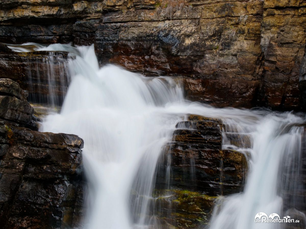 Mit 30 Metern Höhe sind die Upper Falls die höchsten Wasserfälle im Johnston Canyon. Es lohnt sich daher sehr, nicht direkt nach den Lower Falls umzudrehen. Bei den Upper Falls angekommen, gibt es zunächst einen Lookout, zudem kann man direkt zum Wasserfall. Wir empfehlen beide Stationen anzusehen.