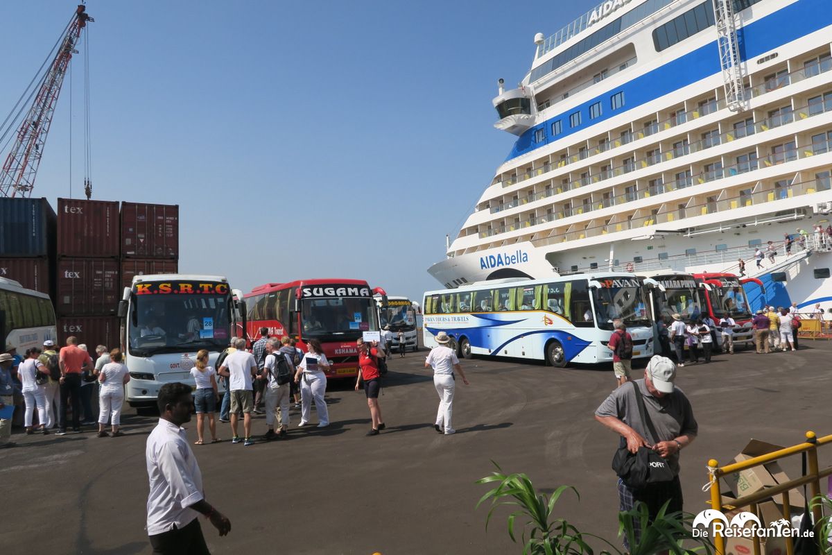 Der Hafen von New Mangalore liegt rund 10 Kilometer außerhalb des Zentrums. Wie schon am Tag zuvor in Cochin legte die AIDA auch hier im Industriehafen an. Vor allem Erz wird hier verladen und überall war ein feiner Staub, der den Hafen zugleich sehr dreckig aussehen ließ.