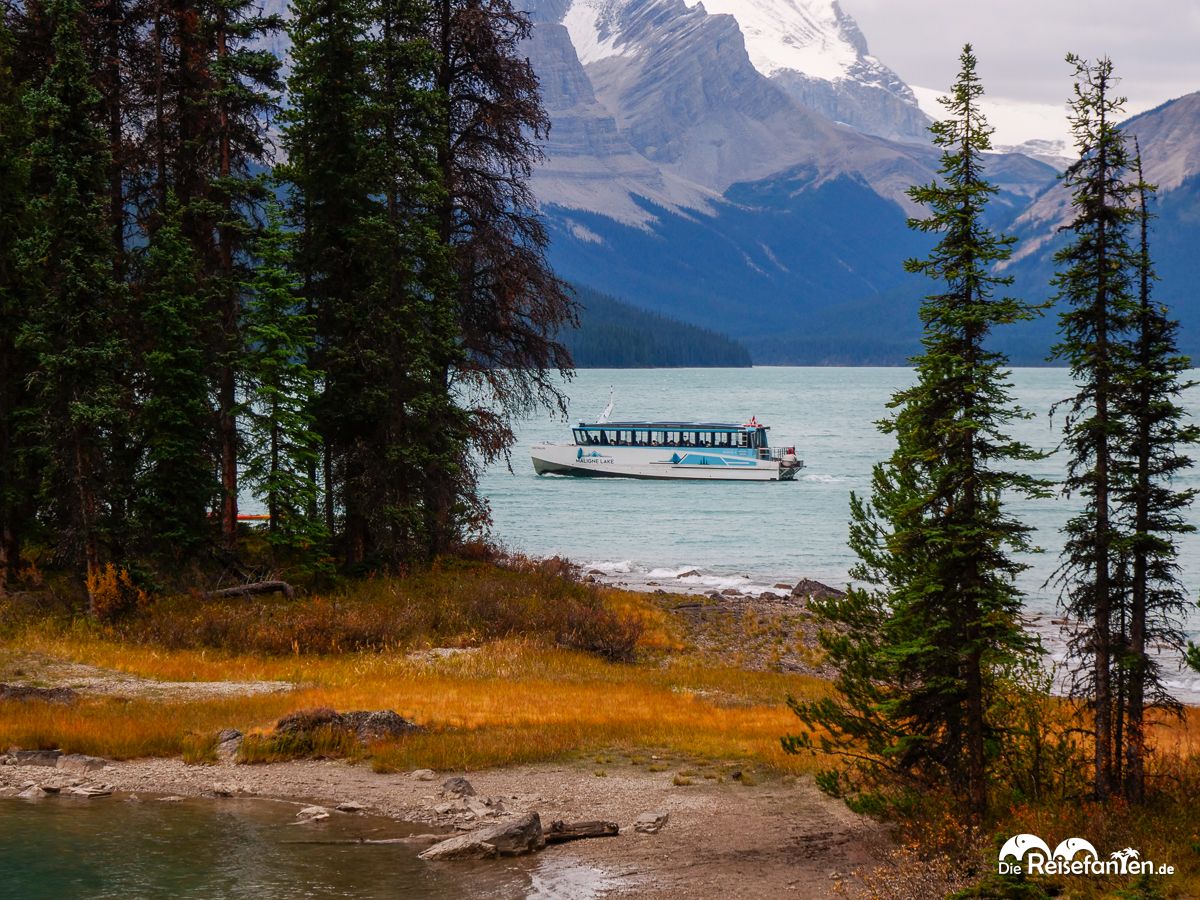 Eine Bootsfahrt auf dem Maligne Lake und Spirit Island