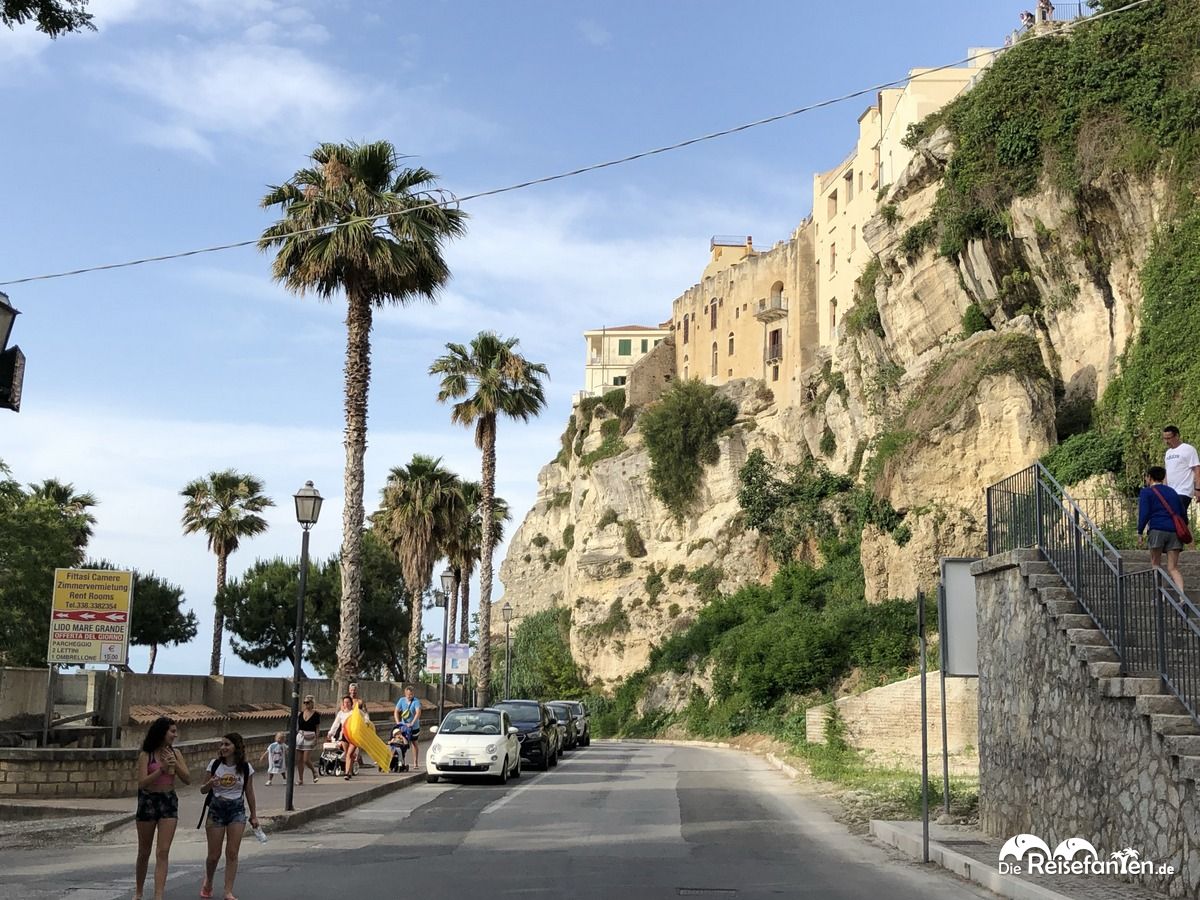 Die Altstadt von Tropea liegt hoch über dem Meer, so dass sich von einer Terrasse aus ein großartiger Meerblick ergibt. Treppen führen hinunter zum Meer und zu den Stränden. Was auf dem Hinweg problemlos gemeistert wird, ist auf dem Rückweg nach oben gerade im Sommer schweißtreibend. An der Aussichtsplattform gibt es wie mittlerweile in vielen touristischen Regionen auch hier ein ‚I Love Tropea‘ Zeichen, wo sich täglich unzählige Touristen ablichten lassen.