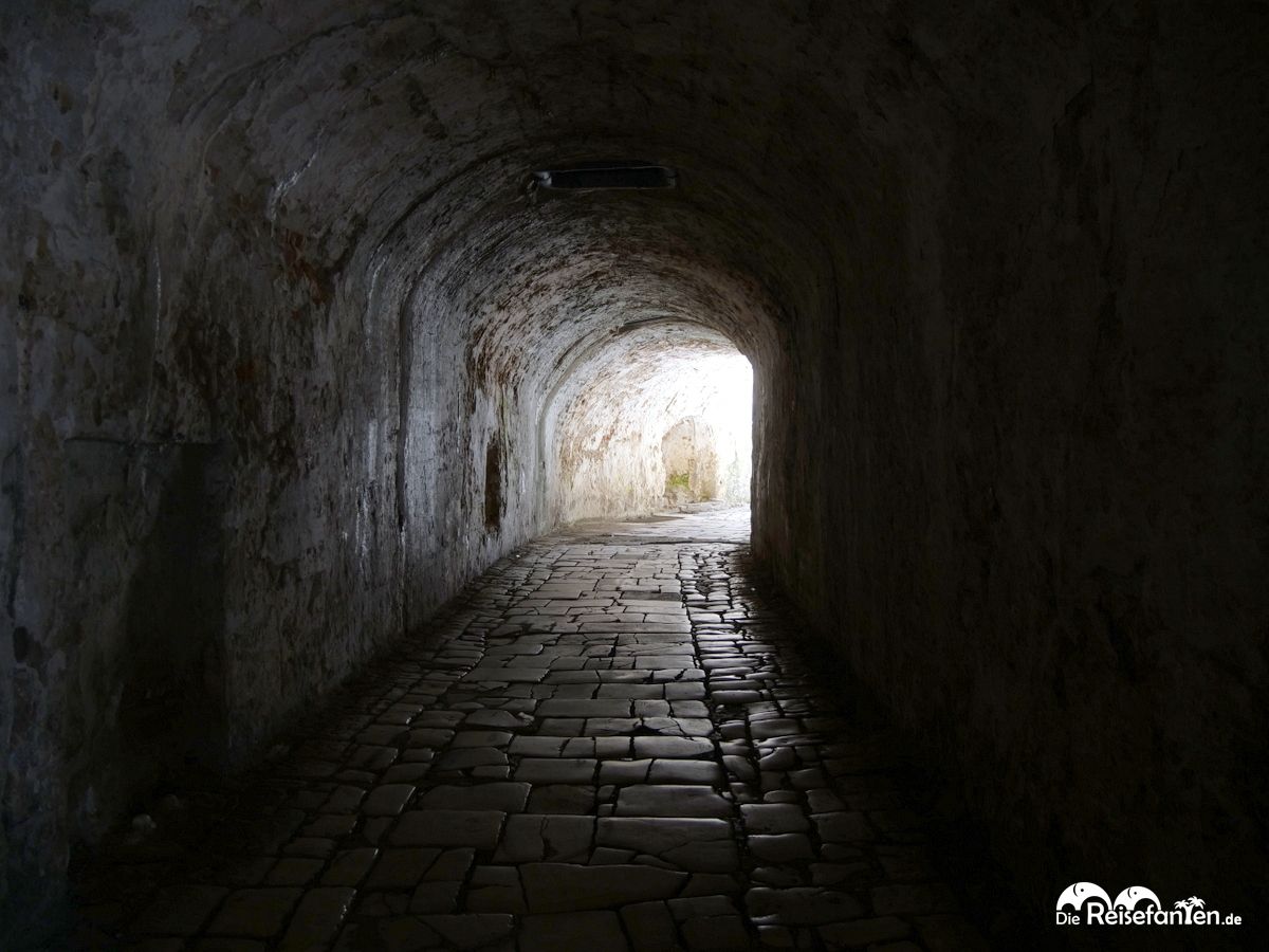 Ein weiterer Pluspunkt der Festung ist, dass man hier so viel Zeit verbringen kann, wie man möchte. Die Anlage ist weitläufig genug, um stundenlang herumzulaufen und alle Ecken und Winkel zu erkunden. Dabei konnten wir immer wieder neue Perspektiven entdecken und den Ausblick auf die Insel genießen. Es gab zwar einige Bereiche, die nicht mehr der Öffentlichkeit zugänglich waren, aber das trübte den Eindruck nicht. Außerdem gab es auch alte, teils verfallene Gebäude zu sehen, z.B. das alte britische Krankenhaus, was ein bisschen wie ein Lost Place inkl. Eintritt wirkte.