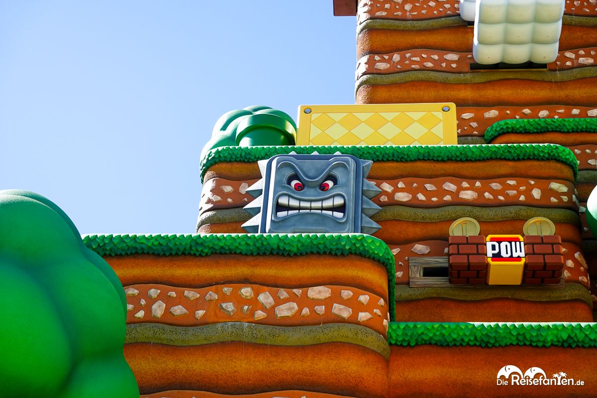 Der nächste Stopp führte uns in die brandneue (und im unteren Parkteil gelegene) Super Nintendo World. Der strahlend blaue Himmel fügte sich perfekt in die lebhafte Kulisse ein. Man fühlte sich wirklich wie in einem Videospiel!