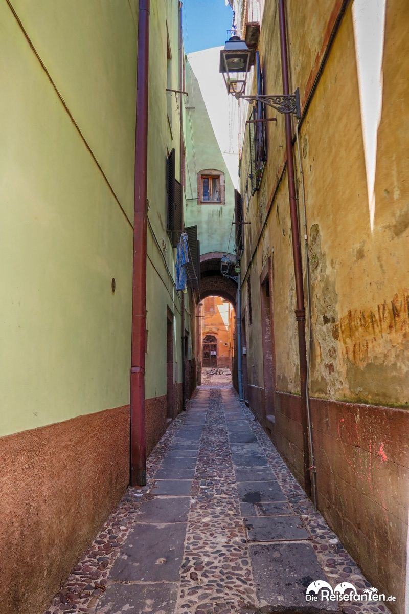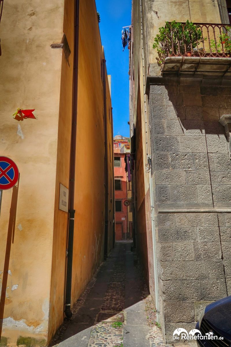 Neben der Farbenpracht der Häuser gibt es in Bosa viel zu entdecken. Die sehr verwinkelte Altstadt besitzt ein mittelalterliches Ambiente und es macht richtig Spaß, durch die vielen kleinen Gässchen und Seitenstraßen zu schlendern. Teilweise sind die Gassen so schmal, dass sie wirklich nur zu Fuß passierbar sind – oder halt per Moped, was die einheimischen Italiener auch in trotz der Enge atemberaubenden Geschwindigkeiten hinkriegen. Es gibt aber auch genug Ecken der völligen Ruhe.