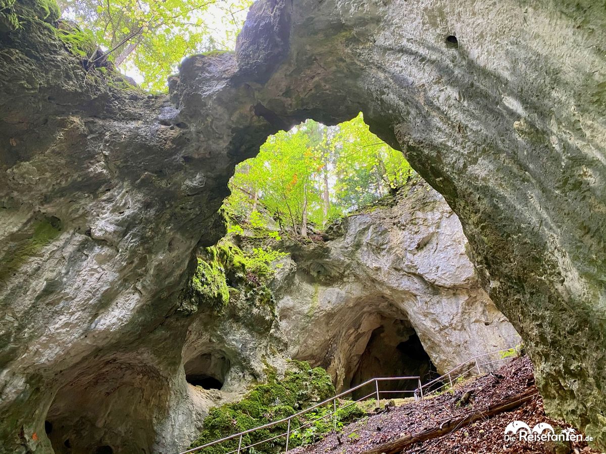 Ein Wanderparkplatz befindet sich direkt an der Straße und schon kann man über einige Treppenstufen den Weg zur Riesenburg erklimmen. Die Riesenburg ist keine Burg an sich, sondern eine Karsthöhlenruine, die zu den bedeutendsten geologischen Naturwundern Bayerns gehört.