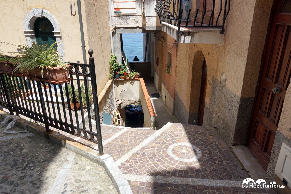 Scilla – dieser Name stammt eigentlich von dem Seeungeheuer Skylla ab, das dort gehaust haben soll. Entdeckt haben wir davon nichts, teilweise aber noch einige Spuren, die darauf hindeuten könnten. Im Ernst, der östliche Teil Scillas, der keinen Strandabschnitt hat, sondern aufgrund der felsig-steinigen Küste für die Fischerei genutzt wird, bietet ganz viel italienisches Flair. Da sind bunte Vespas, ein süßer Ape Calessino auf drei Rädern, ein Skylla-Brunnen, ganz viele alte Türen und auch zahlreiche verlassene oder etwas heruntergekommene Gebäude. Irgendwie eine schöne Mischung aus Alt und Neu, sogar ein Neubauprojekt konnten wir entdecken.