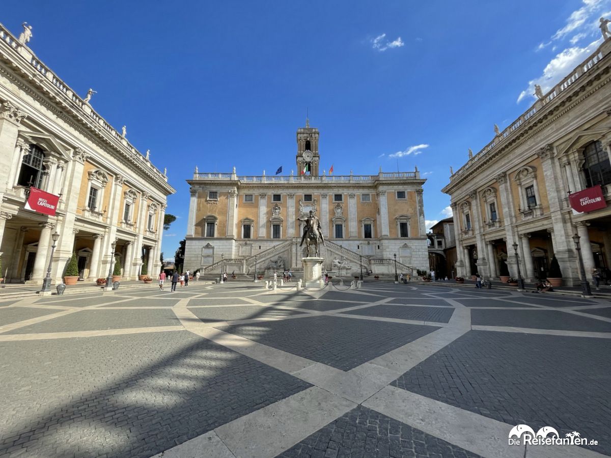 Ein besonders schöner Platz in der italienischen Hauptstadt ist die von Michelangelo entworfene Piazza del Campidoglio, auch bekannt als Kapitolsplatz.