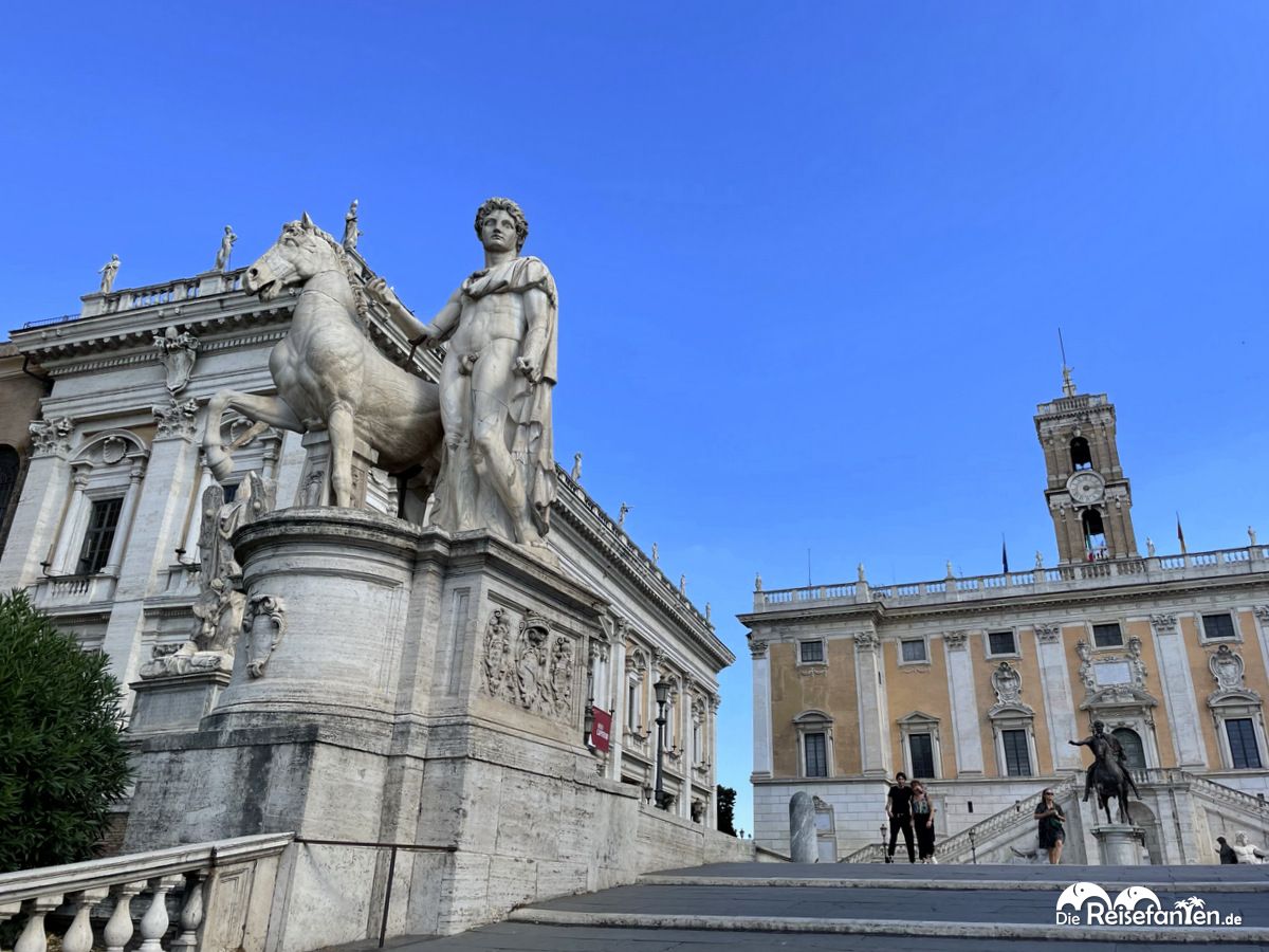 Auf dem Kapitolsplatz befindet sich Senatorenpalast, dem Sitz des römischen Rathauses, sowie das Kapitolinische Museum. Vom hinteren Teil des Kapitolsplatzes hat man einen tollen Blick auf das Forum Romanum. Sofern euer Besuch die Besichtigung des Forum Romanum zeitlich nicht zulässt, der sollte zumindest von hier den Ausblick mitnehmen, um eine Vorstellung von dieser antiken Stätte zu erhaschen.