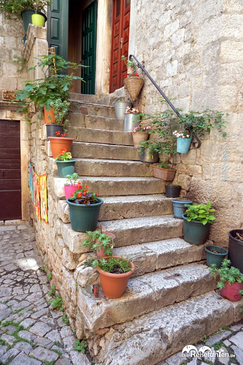Ähnlich wie die Die Türen von Bosa konnten wir auch in Trogir nicht umhin, eine Sammlung der schönen Treppen anzufertigen, die wir vor Ort vorfanden. Ob mit Blumen verziert, verwinkelt oder alt-verschroben – diese Gebäudeteile fanden wir wirklich so schön und gut erhalten, dass wir sie euch nicht vorenthalten wollen.