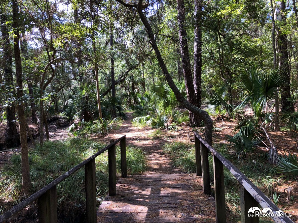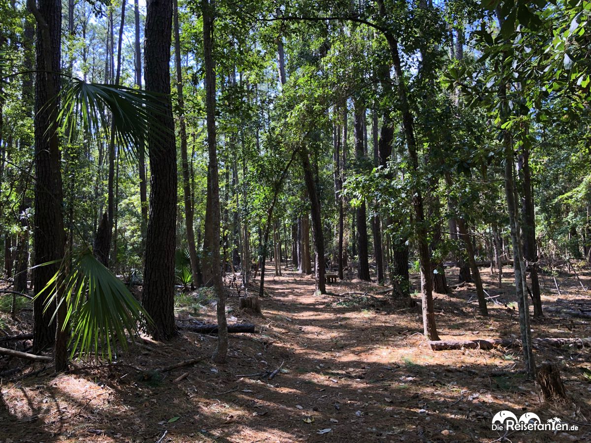 1733 wurde die damalige Plantage gegründet und damit ist sie eine der Ältesten in Savannah. Auf dem Areal gibt es einige Wanderwege, die durch die Vegetation der ehemaligen Plantage führen. Ganz klares Highlight ist aber die Allee. Wir machten es nicht so wie die Amerikaner, sondern stellten unser Auto ab und begaben uns auf einen Wanderweg. Infotafeln informierten dabei über die Flora und Fauna. Viele Besucher waren auf der Plantage nicht unterwegs, so dass wir uns alles in Ruhe ansehen konnten, was uns natürlich besonders gut gefiel.