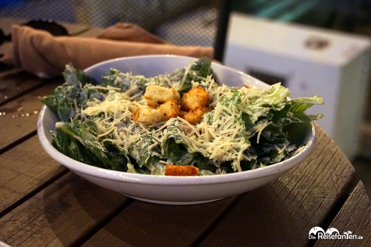 Dort oben war es immer noch gut warm, große Ventilatoren zeugten auch davon, dass es wohl noch deutlich wärmer dort werden kann – Mississippi-Wetter eben. Stechmücken hatten wir dort oben zum Glück keine, dafür aber leckeres Essen. Wir entschieden uns für eine Portion Chili Cheese Fries, einen Caesar’s Salad und zum Abschluss – darf einfach nicht fehlen – ein leckeres Stück Key Lime Pie.