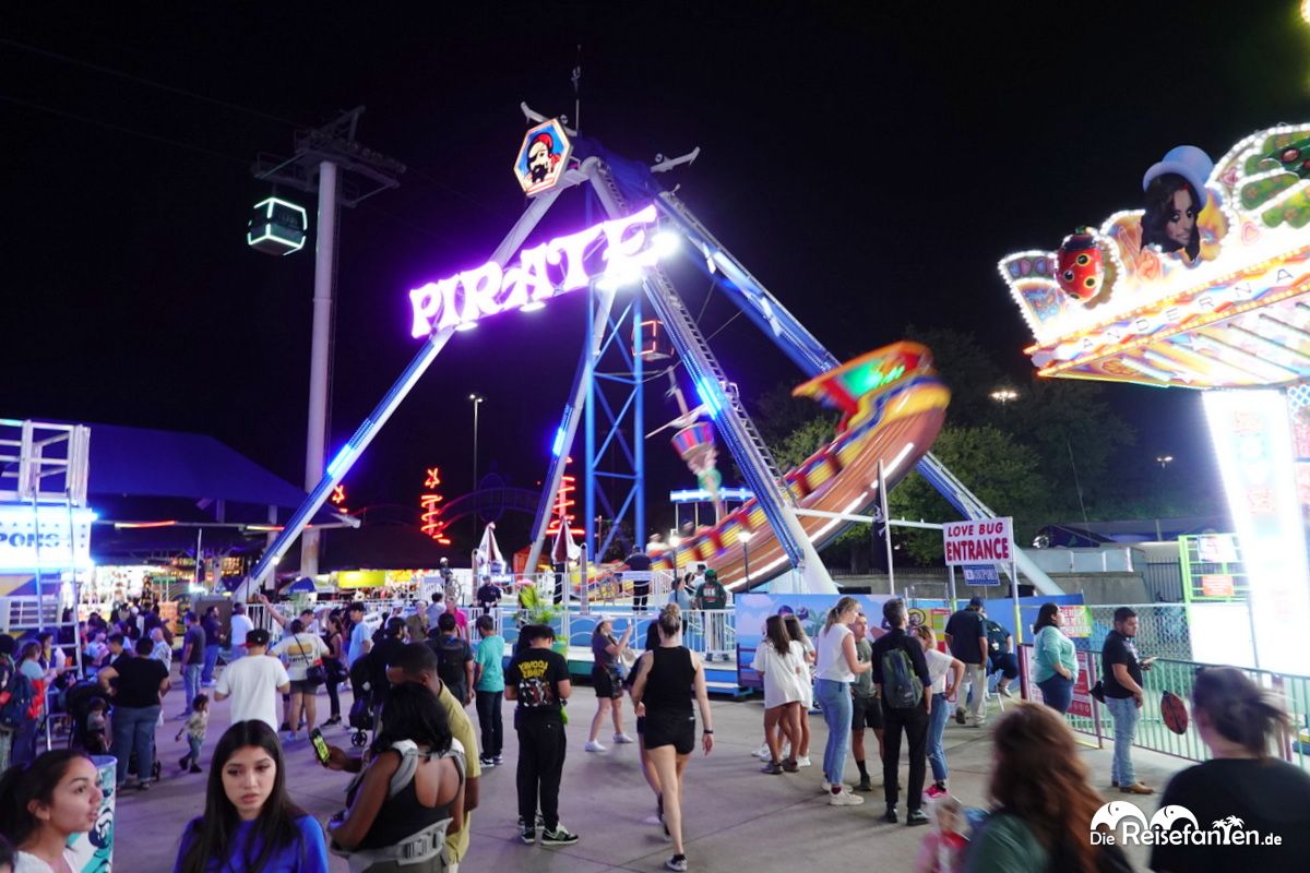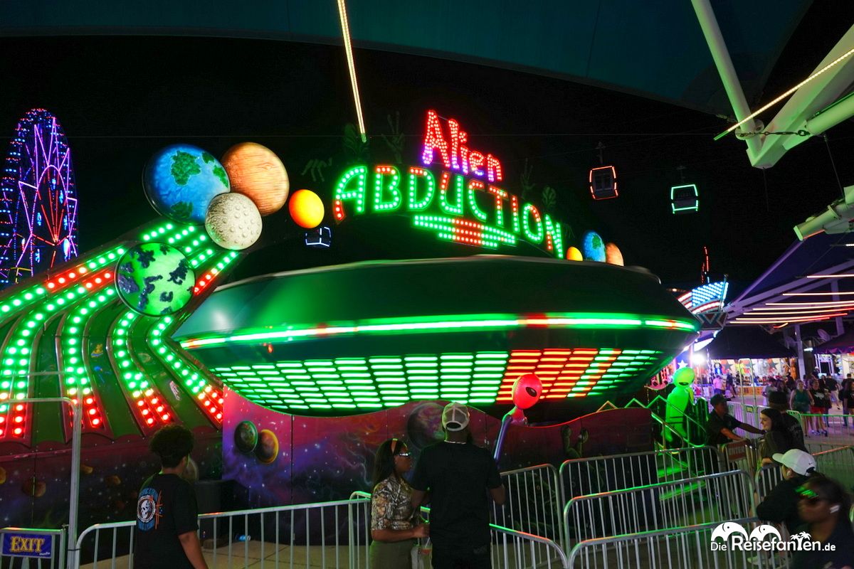 Es war eine lustige Überraschung, ein Fahrgeschäft aus Deutschland zu sehen, komplett mit deutschen Hinweisen aufgedruckt. Es fühlte sich an wie eine kleine Verbindung nach Hause, mitten in Texas. Aber auch sonst gab es unzählige Fahrgeschäfte, von Karussells bis hin zu Alien Abduction Rides – womöglich eine Hommage an das nahe gelegene Roswell.