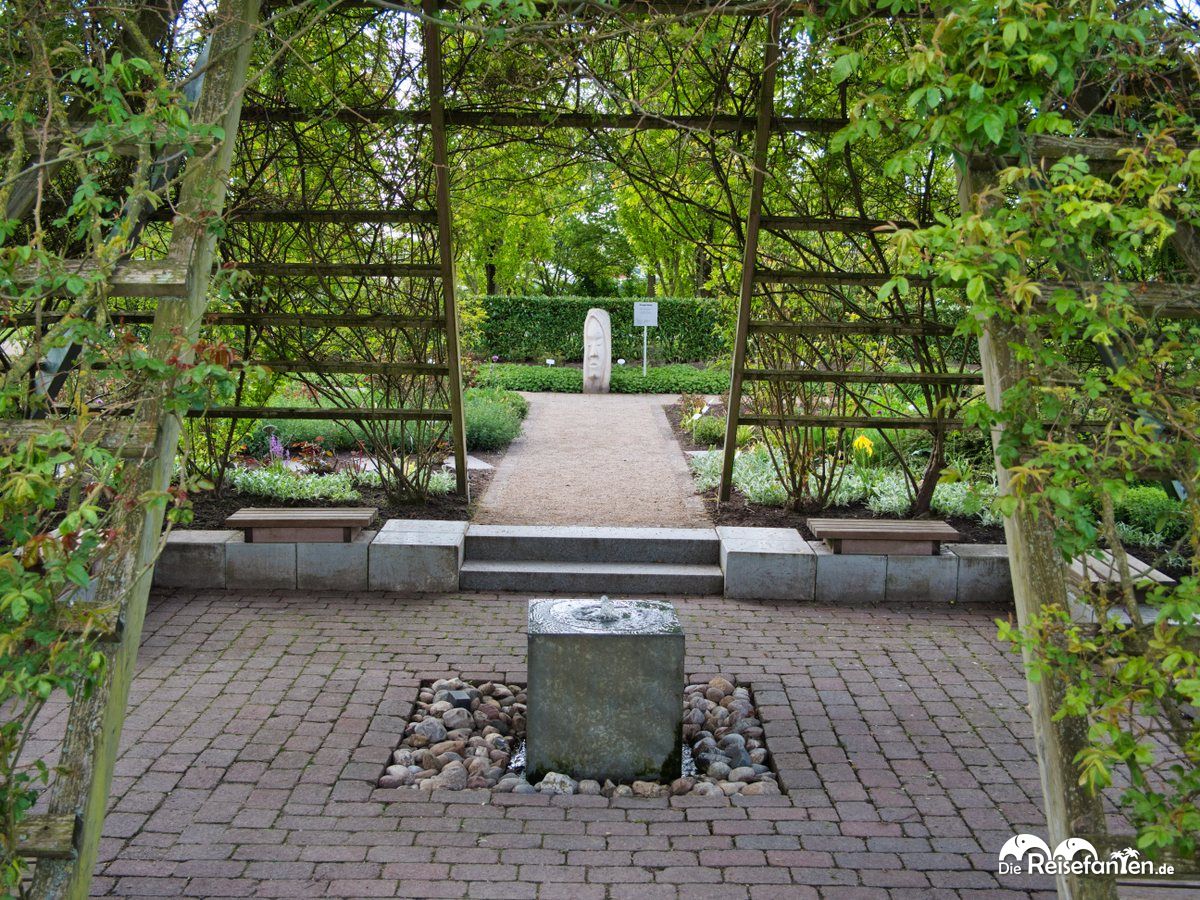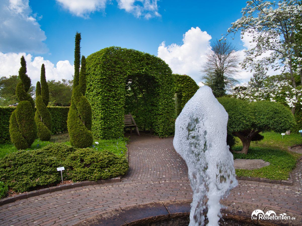 Nach dem Eingangsbereich ging es dann auch schon los mit dem Park der Gärten. Dre Name rührt daher, dass es sich hier um eine Parkanlage handelt, in der zahlreiche Mustergärten angelegt sind und immer neue werden. Vom mediterranen Garten über japanisch, Heide- oder Farn- und Rosengarten – alle möglichen Gartenarten haben hier ihren Platz, zudem gibt es einige Versuchsflächen, in denen Neues ausprobiert und weitere Exemplare vorbereitet werden. Das Gelände wird von einigen Wasserstellen, Grashügeln, einem Aussichtsturm sowie einem Veranstaltungsareal inkl. gastronomischen Angeboten abgerundet. Auf der Karte sieht alles recht groß aus und durch die vielen verwinkelten Wege gibt es auch wirklich viel zu entdecken.