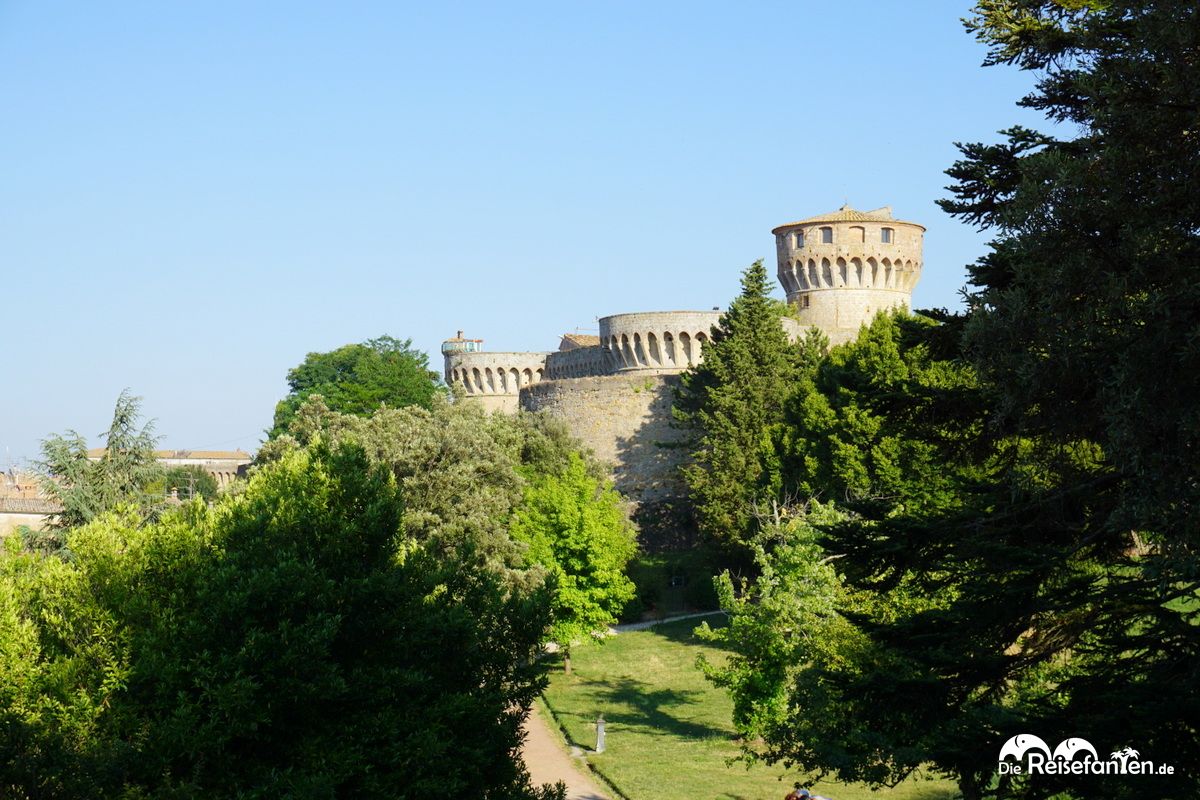 Wir sind von unserer in der Nähe von San Gimignano gelegenen Unterkunft gute eine Autostunde nach Volterra gefahren und wunderten uns schon, dass es so steil nach oben ging in der zwar hügeligen, aber nicht bergigen Toskana. Ganze 550 Meter hoch mussten wir mit unserem kleinen Mietwagen die Hügel und Serpentinen hochfahren, um letztlich in Volterra zu landen. Diese Stadt liegt in der Tat sehr hoch und fast schon isoliert auf einem Bergrücken ca. 50km südlich von Pisa im Herzen der Toskana.