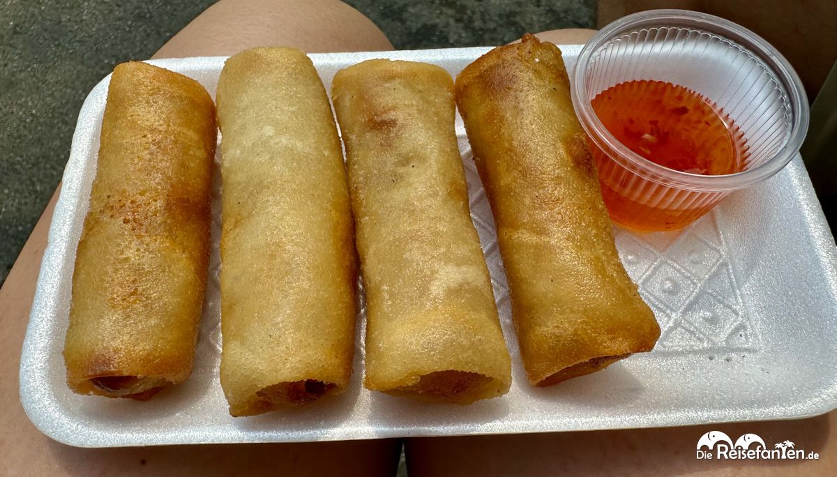 Auf dem Markt kann man sich sehr gut versorgen und hat immer ein kühles Getränk parat, so dass man nicht viel mitnehmen muss. Auch findet man viele Snacks zu kleinen Preisen. Mango Sticky Rice, Klebereis mit frischer Mango, gehört zu unseren Leibspeisen – einfach unglaublich lecker.