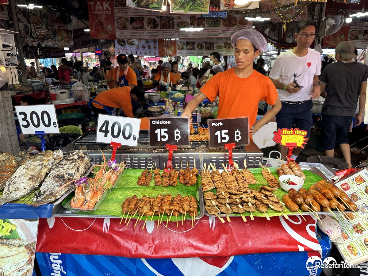 - Lebensmittel und Getränke: Es gibt zahlreiche Stände mit thailändischen Snacks, frischen Früchten, Straßenessen und Getränken.