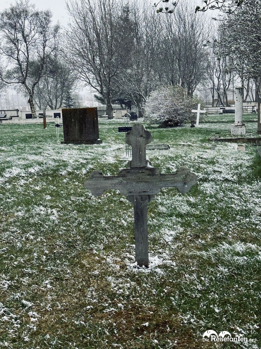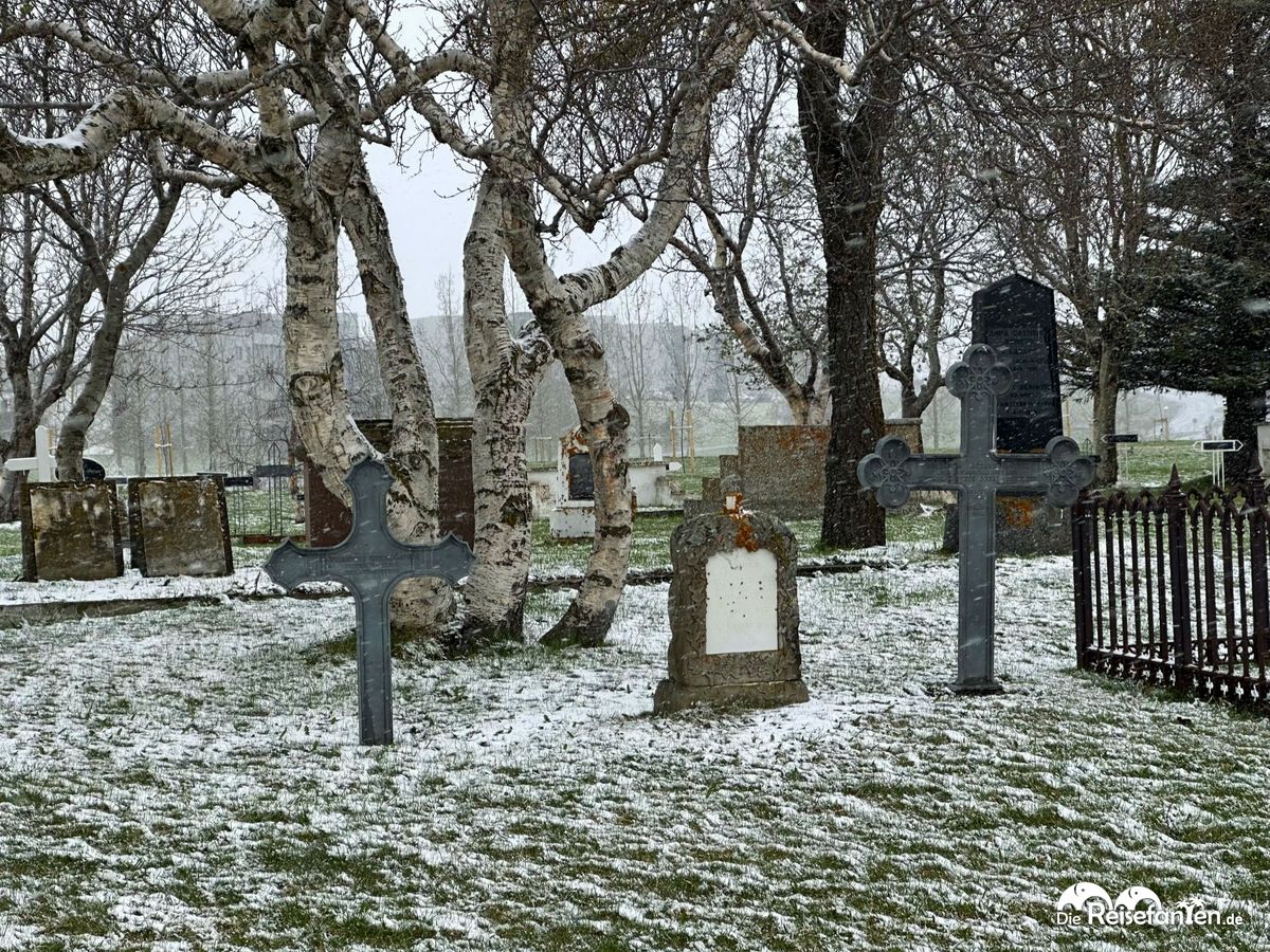 An einer kleinen Kirche ging es dann sehr steil bergauf und letztlich kamen wir an einem Friedhof raus. Da der Friedhof so hoch gelegen ist, sollte man eigentlich auch von hier einen guten Ausblick haben – bei unserer Wetterlage war das aber leider nicht der Fall.
