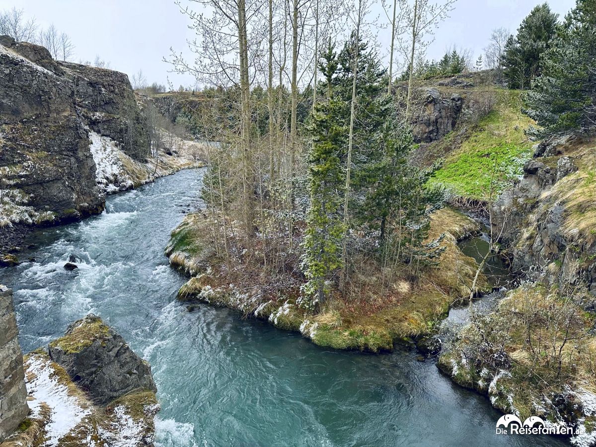 Entlang der Glera setzten wir unseren Rundgang fort. Die Glera ist ein Fluß. der quer durch Akureyri fließt und somit die Stadt teilt. Es gibt einen schönen Weg direkt entlang der Glera. Aufgrund der schönen Winterlandschaft ergaben sich hier zudem schöne Fotomotive.
