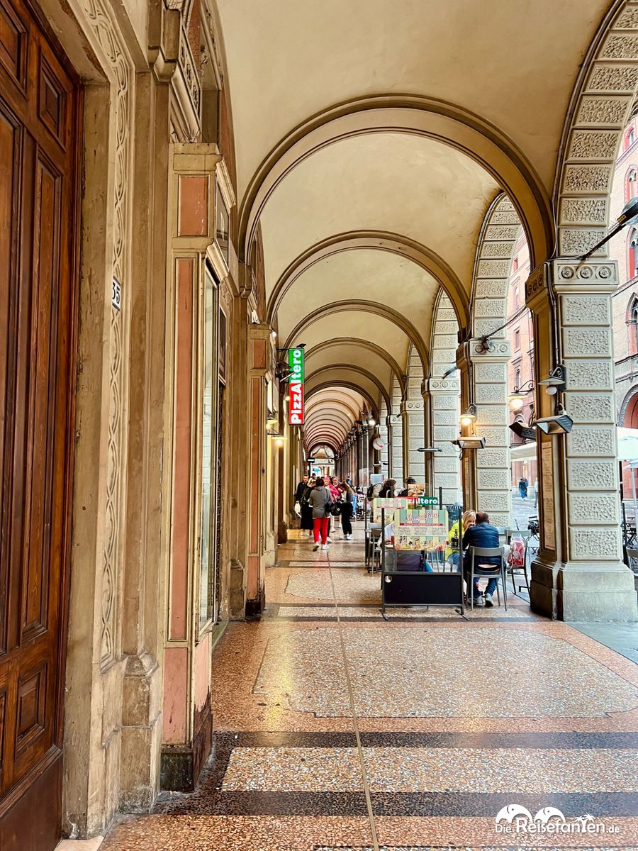 Bologna ist die Stadt der Arkaden und seit ein paar Jahren sind diese sogar Teil des UNESCO Weltkulturerbes. Es heißt, dass die Arkaden insgesamt 40 Kilometer lang – kaum vorstellbar. Besonders schön zu sehen sind die Arkaden bei der Banco d’Italia mit einer schönen Deckenmalerei. Zurückzuführen sind die Arkaden auf die Besiedelung in Zeiten des Handels – im unteren Bereich war Platz für die Ladengeschäfte, oben wurde gewohnt.