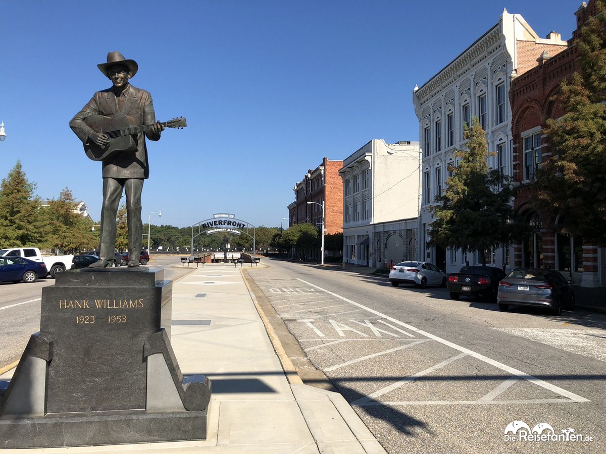 Am Riverfront Park, der sich an sich nicht sonderlich lohnt, da es wenig zu sehen gibt, gibt es mit der Hank Williams Statue gleich die erste Sehenswürdigkeit der Stadt. Die Countrymusik-Legende stammt aus Montgomery und zu seinen Ehren wurde diese Statue errichtet.