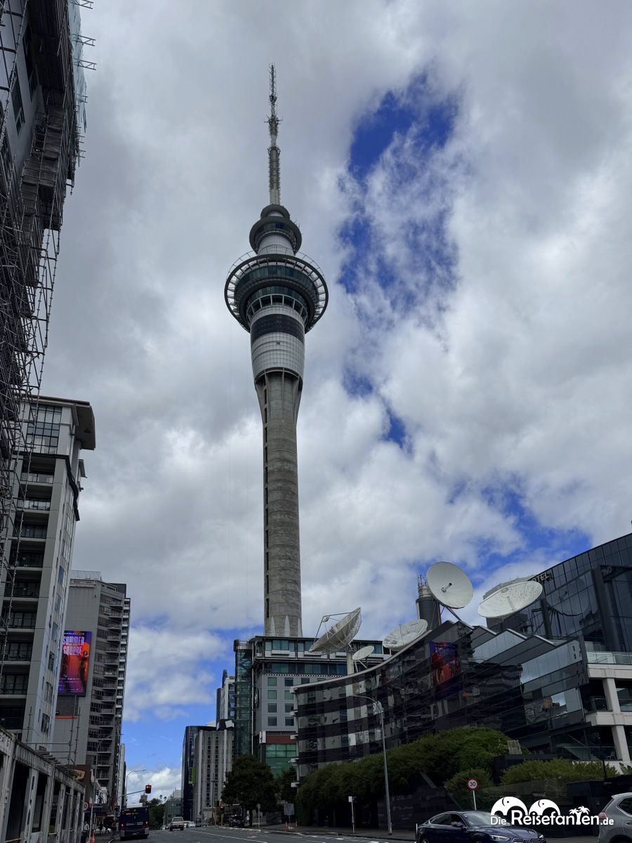 Wir starteten am Skytower, den wir schon von den Silvester-Feuerwerken aus dem Fernsehen kannten. Wir hatten uns den Skytower aufgrund der Aufnahmen irgendwie größer vorgestellt. Dennoch ist der Sky Tower in Auckland mit 328 Metern Höhe das höchste Gebäude Neuseelands. Er ist auf jeden Fall hoch genug, um als Bungee Jumping Spot zu dienen. Das ist eher nicht unser Ding, uns reichte der Blick von unten aus. 😉Auckland (10)