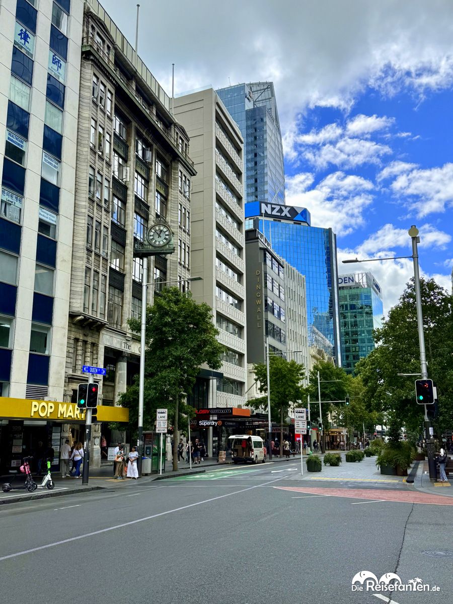 Weiter ging es zur Queen Street, der Haupteinkaufsstraße von Auckland. Die Straße war deutlich grüner als vermutet, mit vielen Bäumen. Die großen Ketten haben hier ihre Filialen aber auch viele Geschäftsgebäude befinden sich hier. Innovative Geschäfte haben wir nicht gefunden, für den Schaufensterbummel war es aber trotzdem ganz nettAuckland (11)