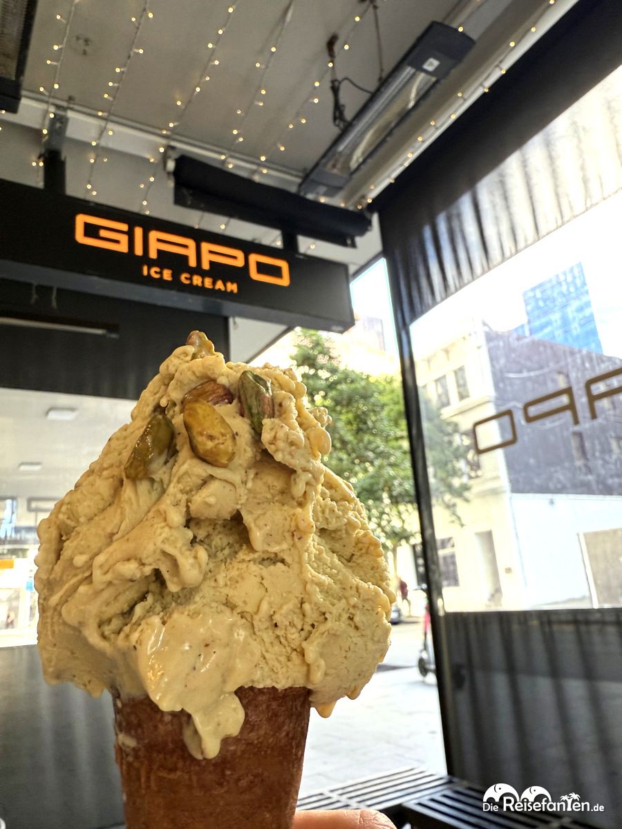 Bei Giapo legten wir anschließend eine kleine Eispause ein. Wer uns schon länger verfolgt, der / die weiß, dass wir auf Pistazieneis stehen. Bei Giapo gab es die kalifornische Variante. 14 NZD pro Portion aber seeehr lecker. Und bei 25 Grad gehört ein Eis natürlich dazu. 😉Auckland (9)