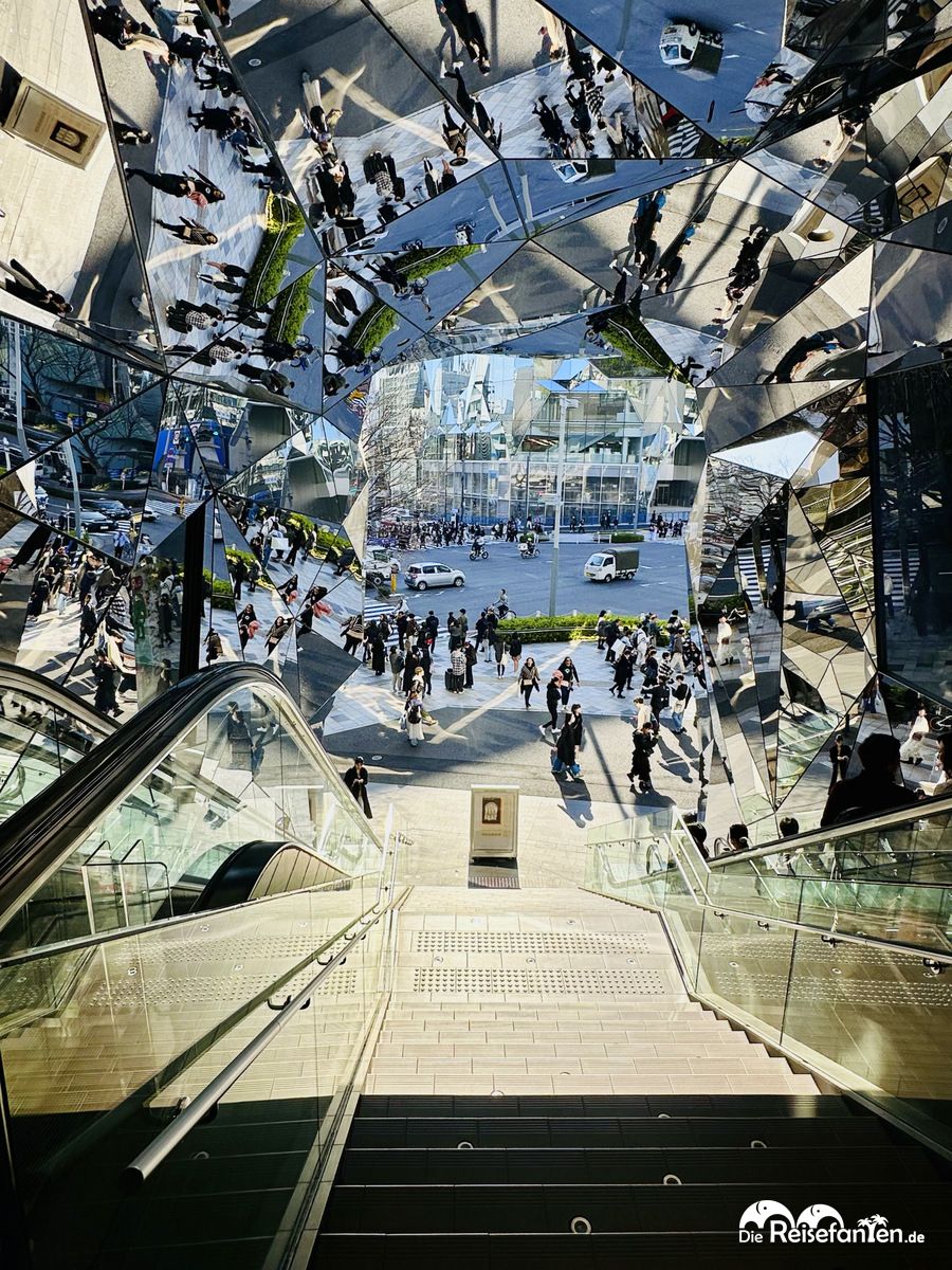 Ein Einkaufszentrum, welches aufgrund seiner außergewöhnlichen Fassade viral gegangen ist ist das Tokyu Plaza Harajuku. Von der Rolletreppe kann man tolle Fotos machen und anschließend die Geschäfte erkunden.