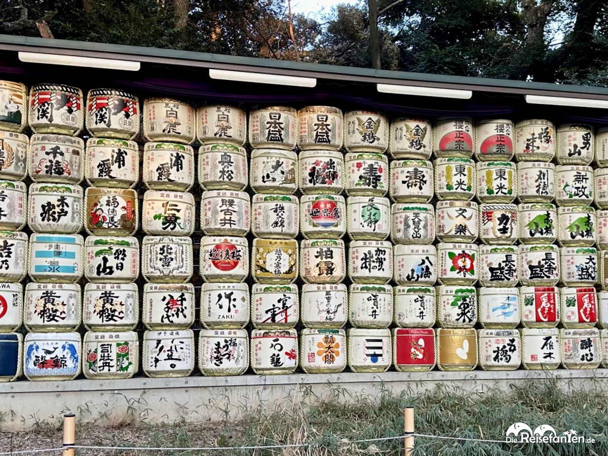Schließlich erreichten wir den Meiji-jingu Schrein. Dieser Shinto Schrein befindet sich in einem Wald. Das an sich ist schon total verrückt, schließlich befinden wir uns in der Millionenmetropole Tokyo, da hätten wir keinen zentralen Wald vermutet. 🙂 Der Schrein wurde 1920 erbaut und während des zweiten Weltkrieges zerstört und wieder aufgebaut. Da sich der Schrein zentral im Waldstück befindet, hatten wir einen kleinen, entspannten Spaziergang inklusive. Es handelt sich um eine sehr gut besuchte Anlage in Tokyo aber Aufgrund der Lage war es bei unserem Besuch nicht ganz so voll wie am Asakusa Schrein.