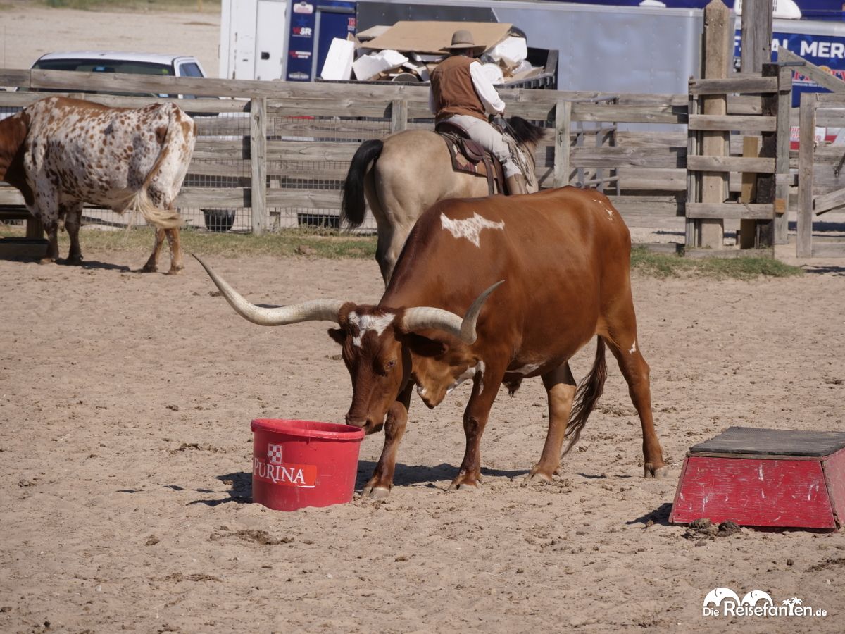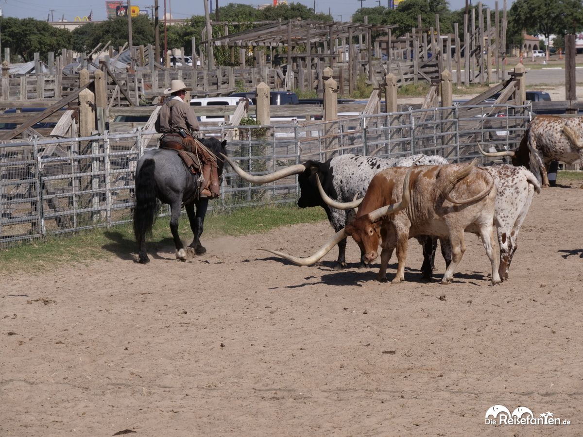Der absolute Höhepunkt unseres Besuchs war der Viehtrieb. Zweimal täglich wird eine Herde Longhorn-Rinder die Hauptstraße entlang getrieben, genau wie es vor hundert Jahren der Fall war. Es war faszinierend zu sehen, wie die Cowboys ihre Pferde lenkten und die Tiere geschickt durch die Straßen manövrierten. Obwohl die Show ziemlich schnell vorbei war, war die Atmosphäre elektrisierend und ein echtes Spektakel.